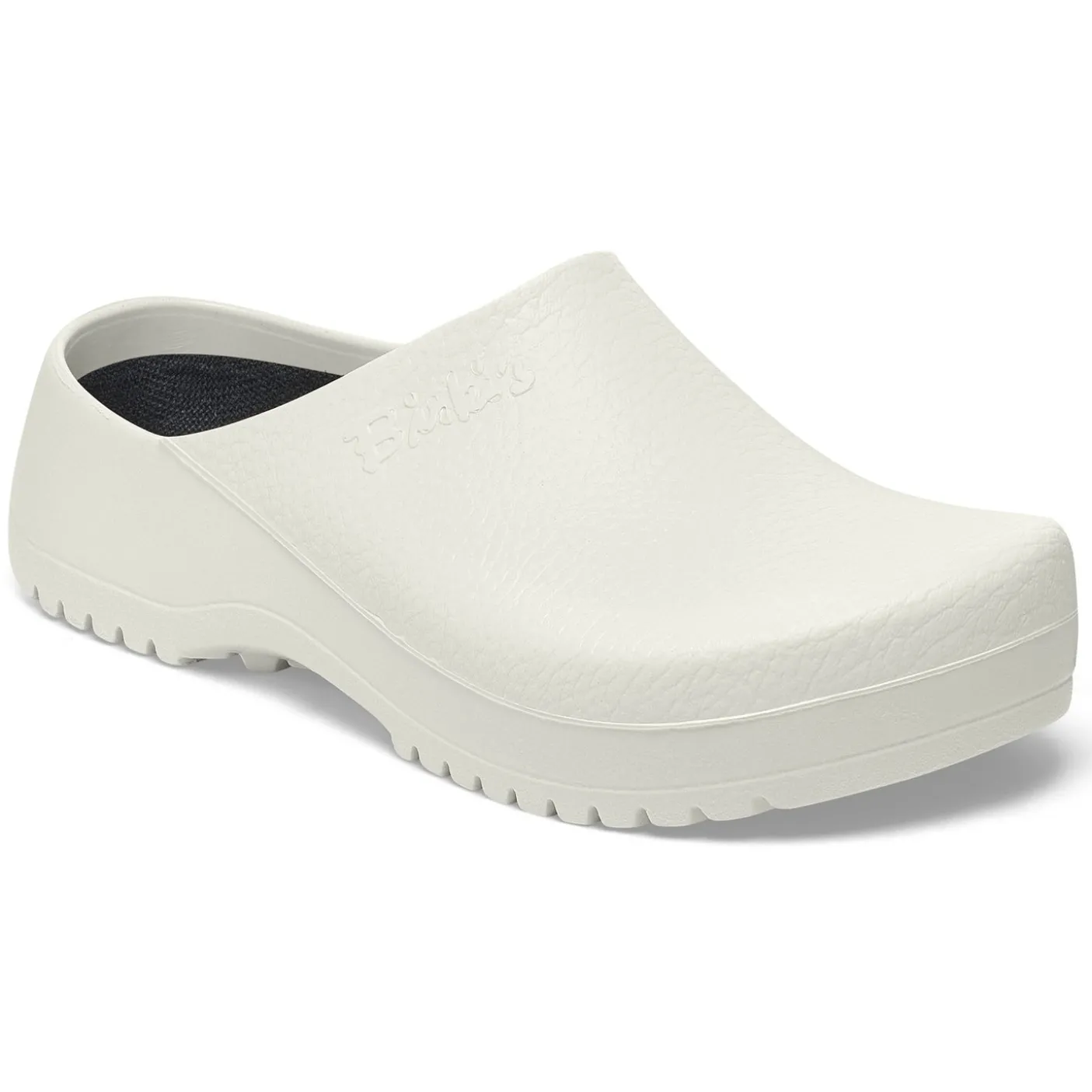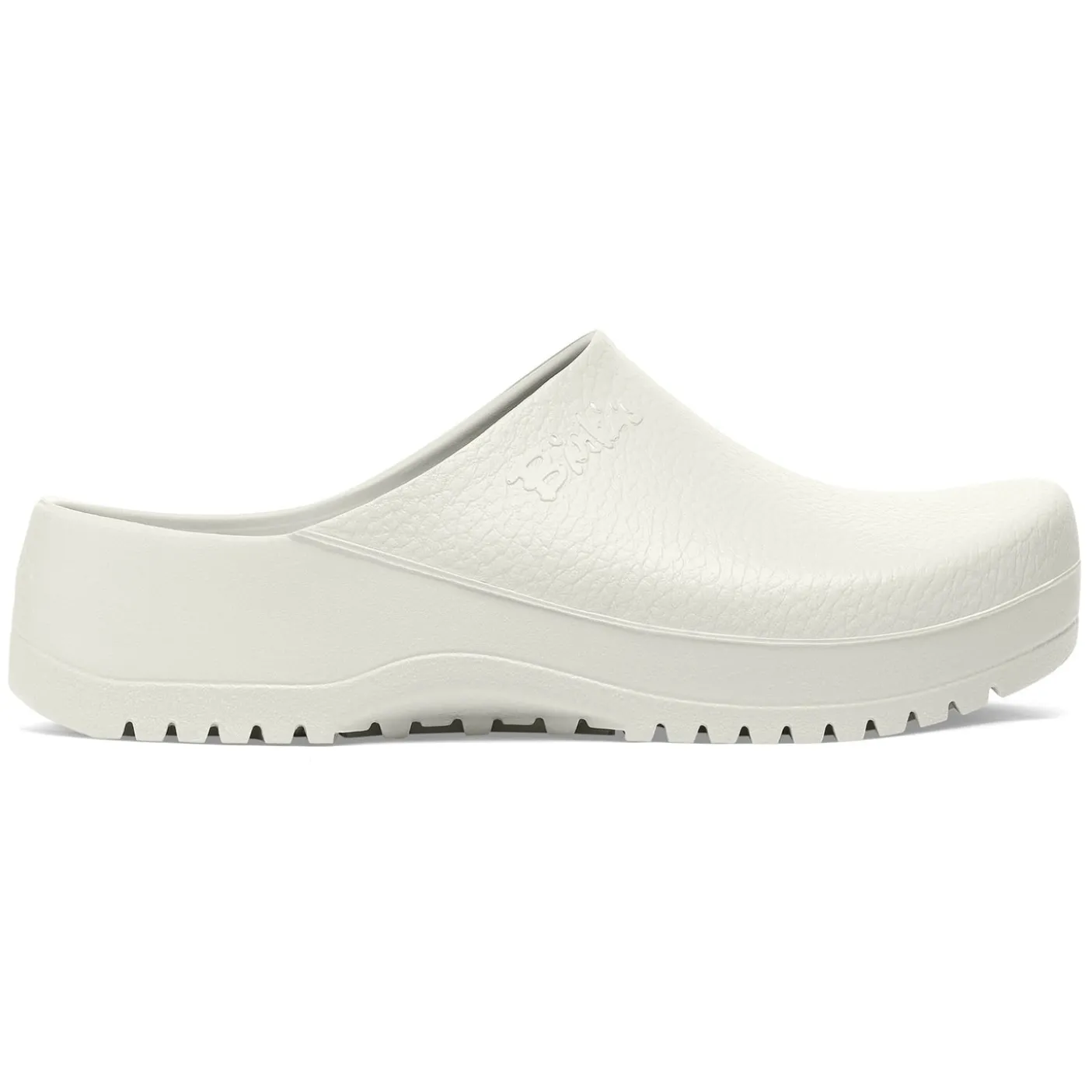 The Super Birki PU is the Birkenstock clog for professional wear. With a flat heel and seamless moulded design, this stable clog is water and dirt-resitant, super-grippy and skin-friendly.