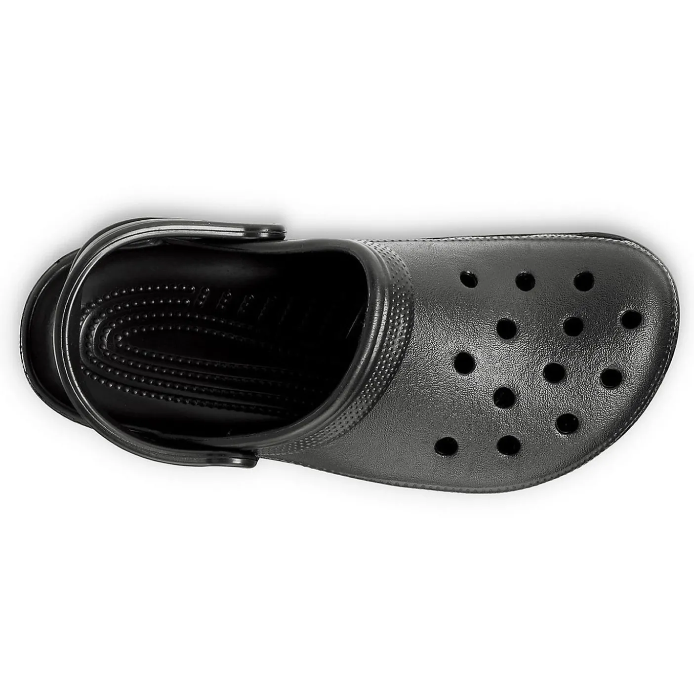 Fully-moulded Croslite material construction for lightweight cushioning. Massage-pod footbed feels good. Heel strap. Non-marking Croslite material outsole. Accepts Jibbitz.