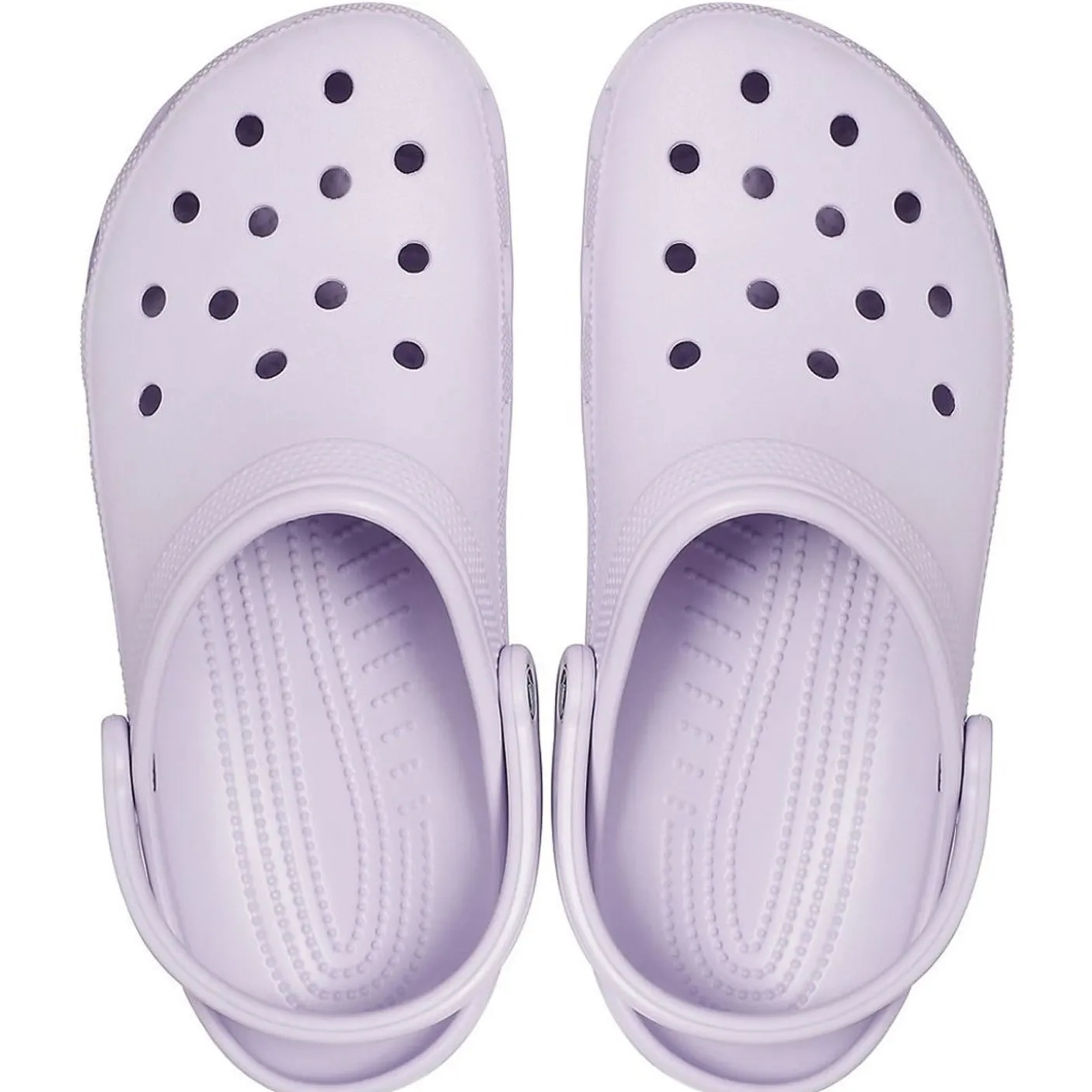 Fully-moulded Croslite material construction for lightweight cushioning. Massage-pod footbed feels good. Heel strap. Non-marking Croslite material outsole. Accepts Jibbitz.