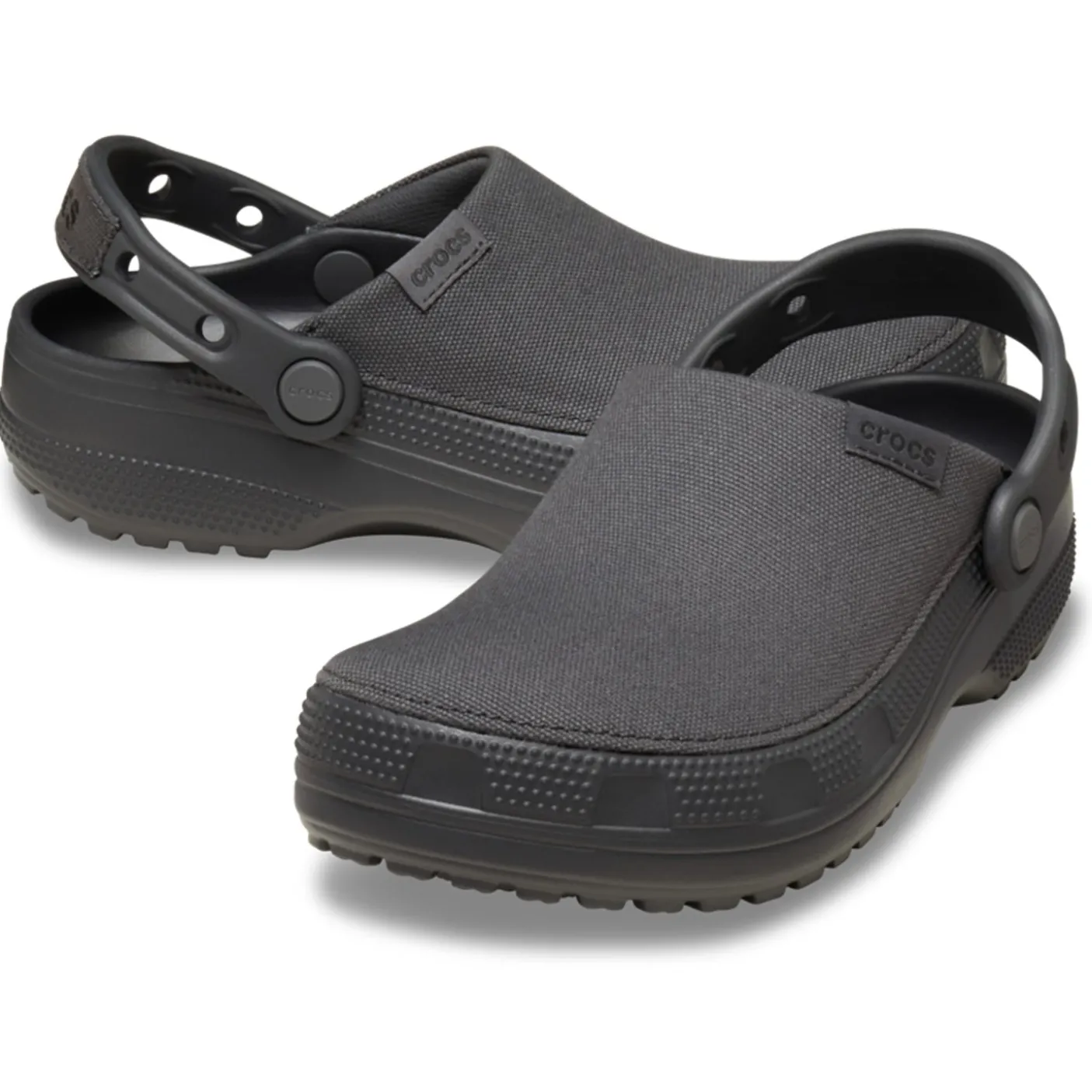 Meet your new go-to clog. The Classic Crafted Clog. It keeps everything you love about the Classic Clog but introduces a soft, washed canvas upper made from 100% textile. You still get the familiar fit and reliable Croslite outsole for durability and support, while the canvas adds a youthful, stylish touch and extra comfort. It also serves as a perfect canvas for personalization with markers, and the heel-strap Jibbitz holes let you customize even more. For a fresh, creative spin on classic Crocs comfort, step into the Classic Crafted Clog.