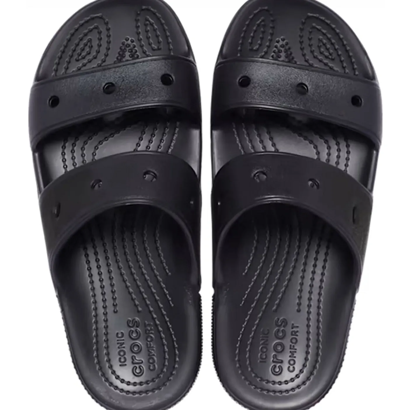 Two upper straps that secure your feet. Flex grooves on soles to increase flexibility and enhance traction. Waterproof and Quick-drying. Iconic Crocs comfort.