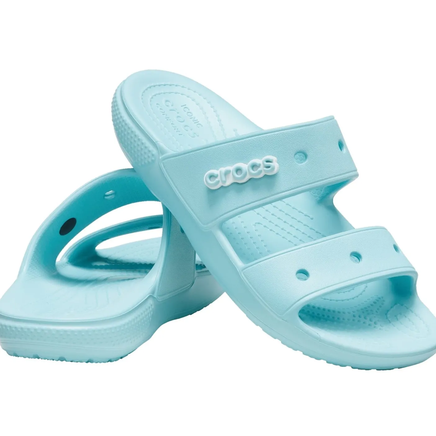 Two upper straps that secure your feet. Flex grooves on soles to increase flexibility and enhance traction. Waterproof and Quick-drying. Iconic Crocs comfort.