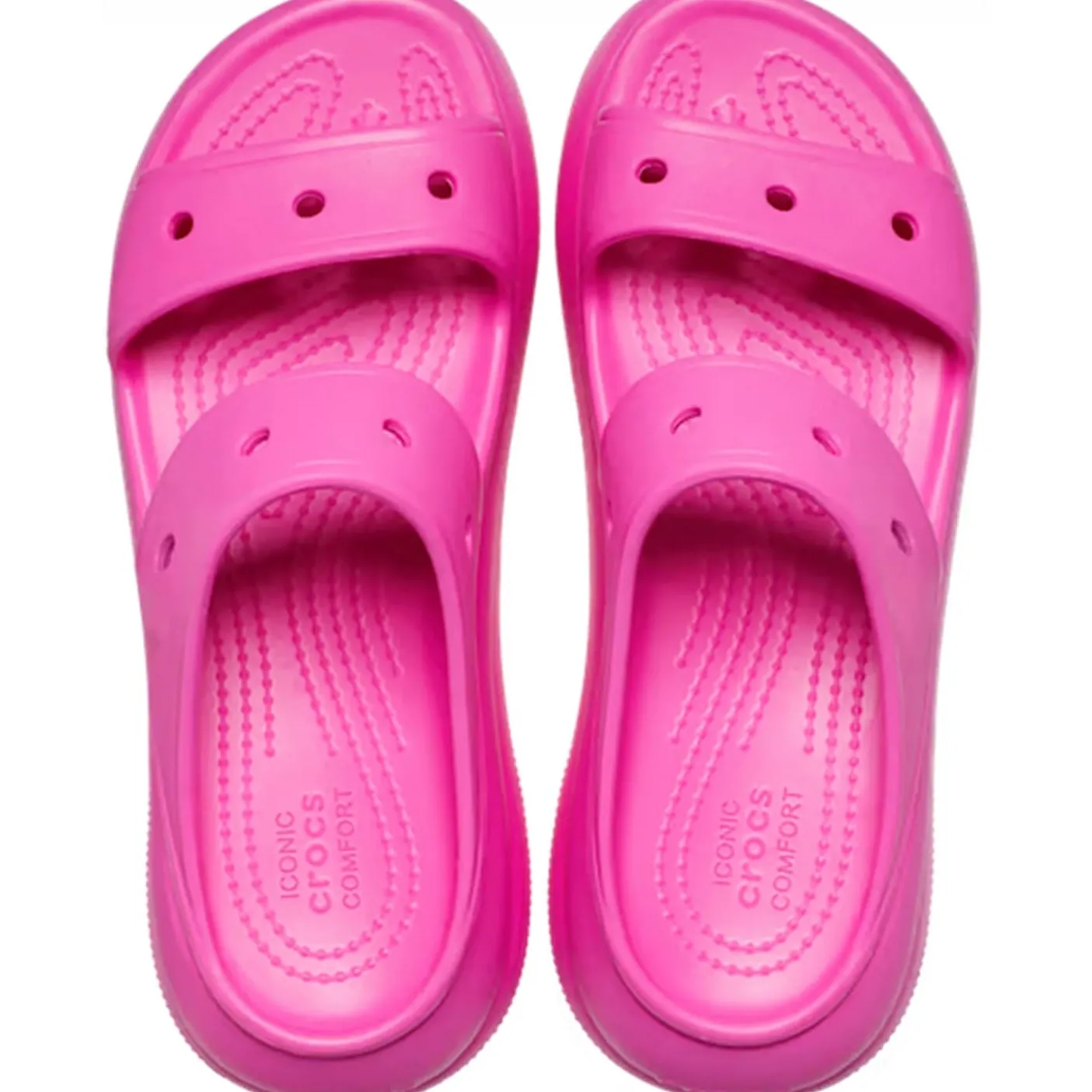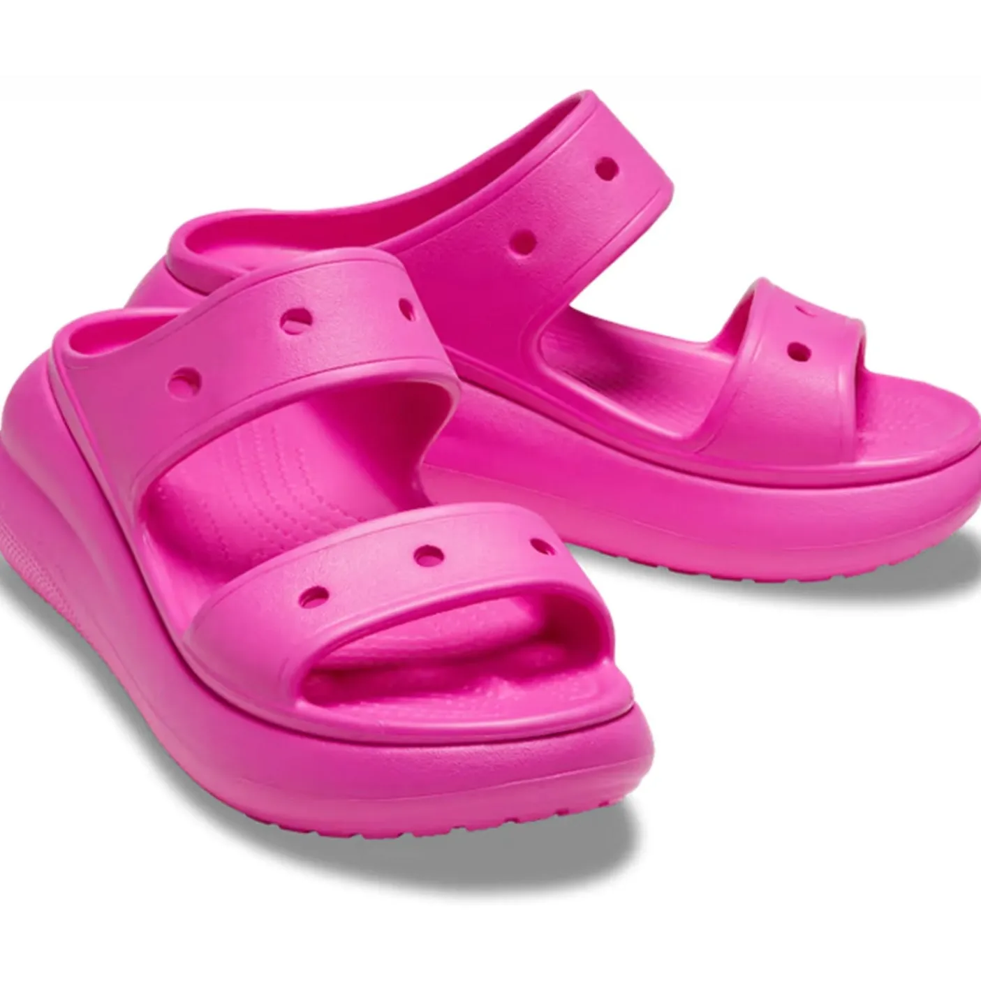 Two upper straps that secure your feet. Flex grooves on soles to increase flexibility and enhance traction. Waterproof and Quick-drying. Iconic Crocs comfort.