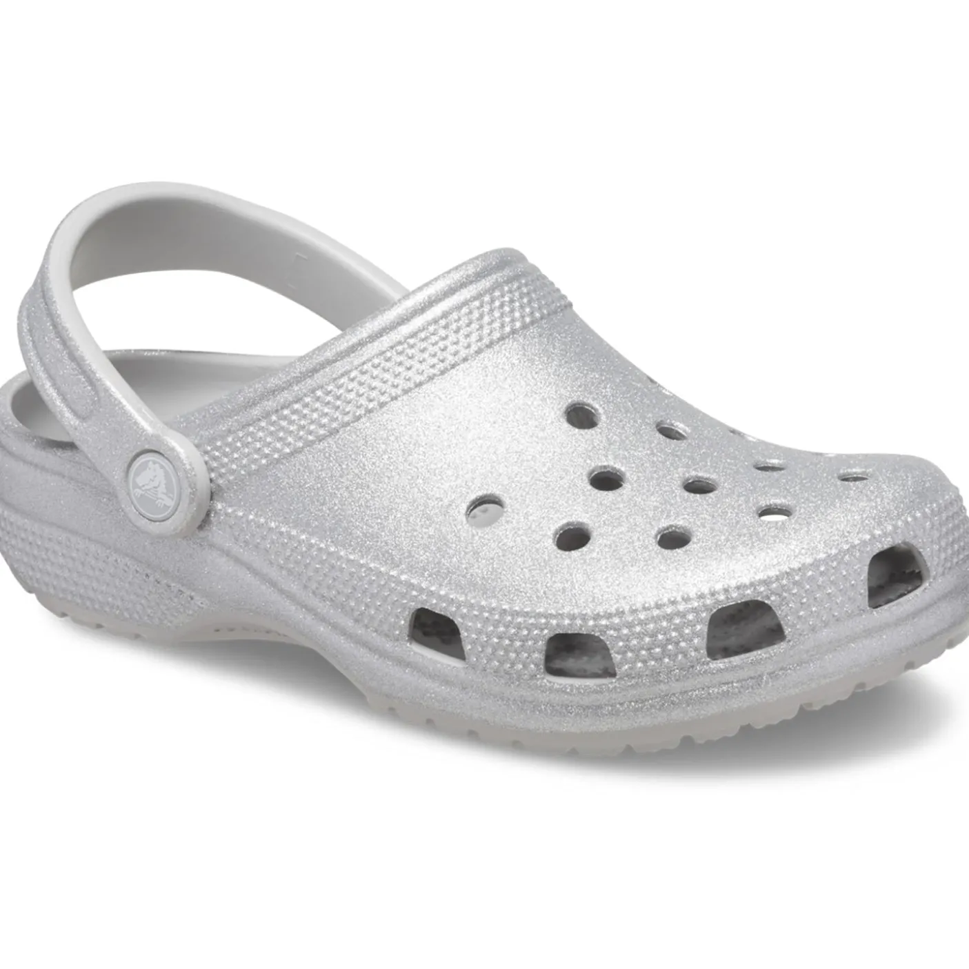 Crocs iconic Classic Clog but now with more glitter!Fully-moulded Croslite material construction for lightweight cushioning. Massage-pod footbed feels good. Heel strap. Non-marking Croslite material outsole. Accepts Jibbitz.