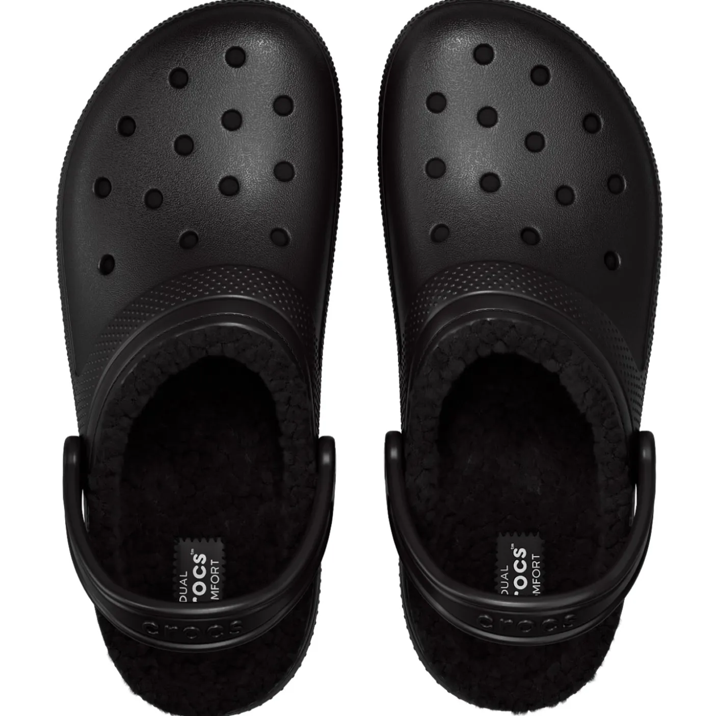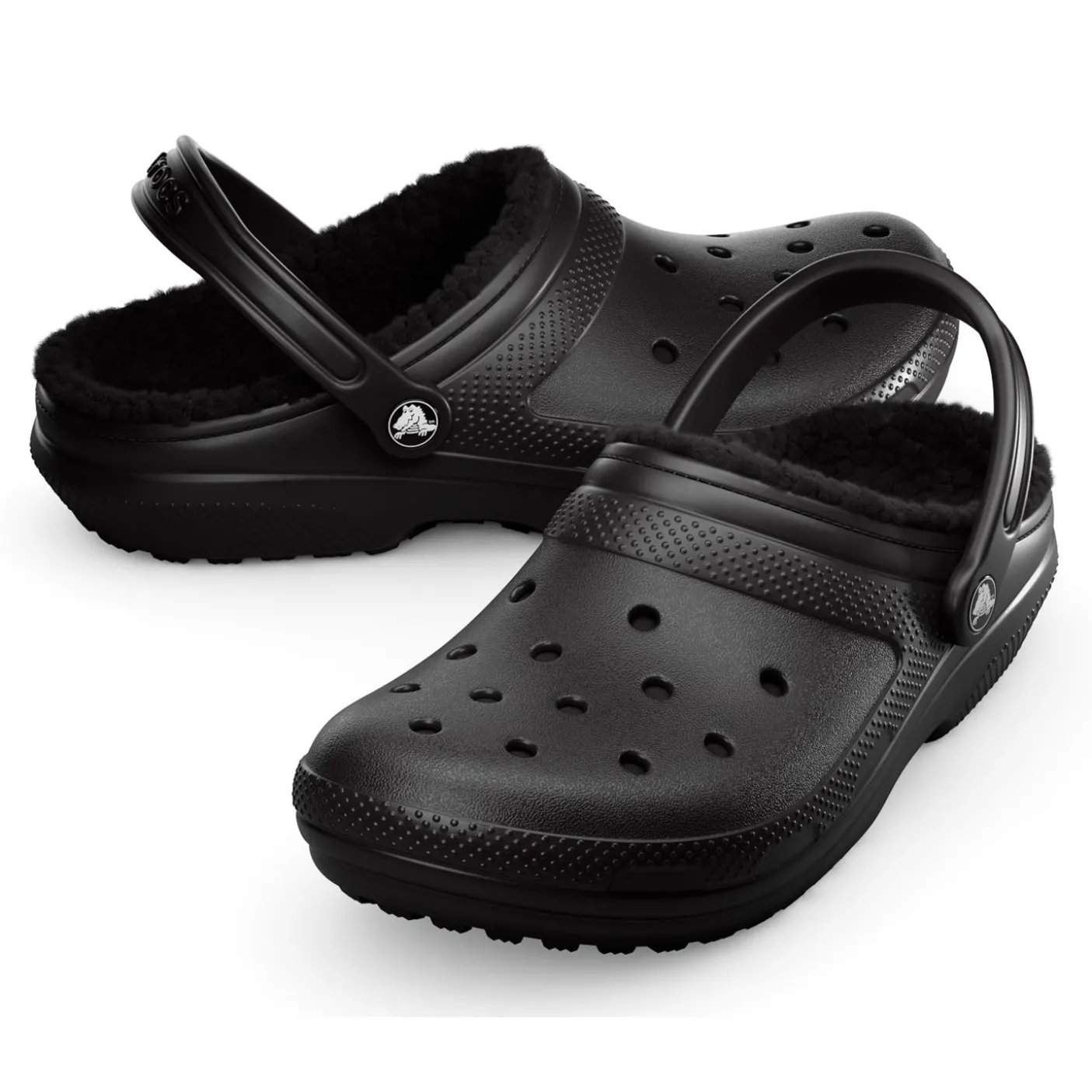 Warm, fluffy fleece synthetic lining for added warmth. Croslite material midsole for lightweight cushioning. Heel strap for a secure fit. Non-marking Croslite material outsole. Dual Crocs comfort. Accepts Jibbitz.