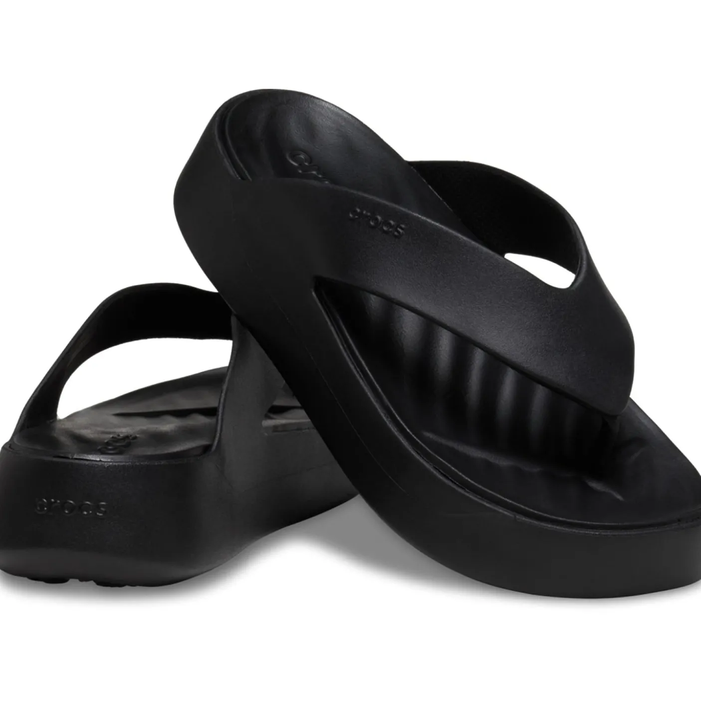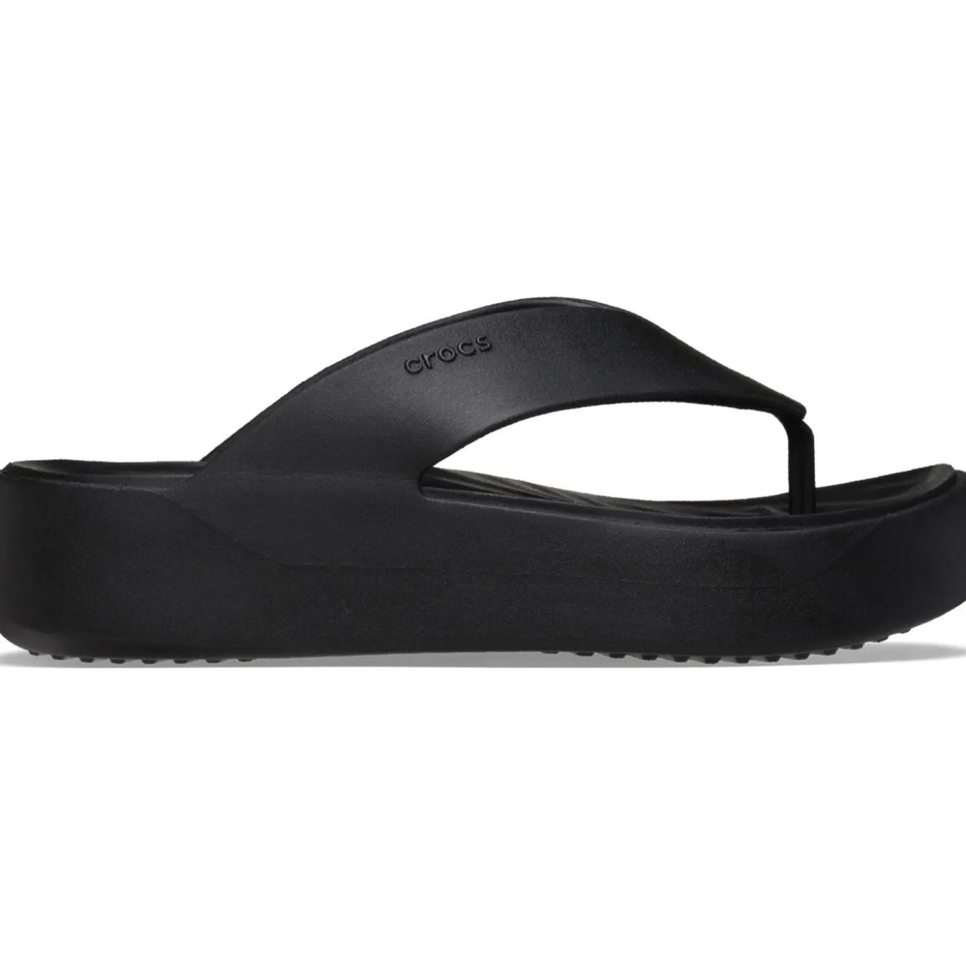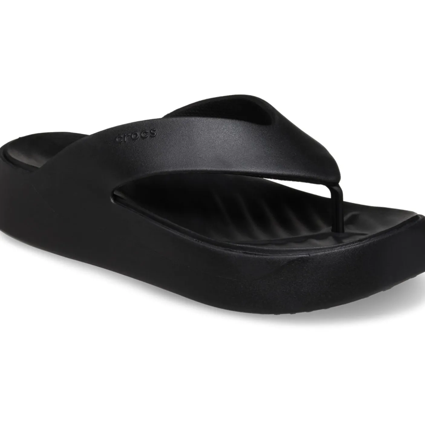 Crocs are elevating the flip-flop! The basic style every woman needs made prettier, more versatile, yet every bit as comfortable. A prettier, more feminine everyday flip. Comfortable platform height for a little lift without heels. Incredibly light and versatile; for beach, pool, travel and beyond. Iconic Crocs comfort original Croslite foam cushion.