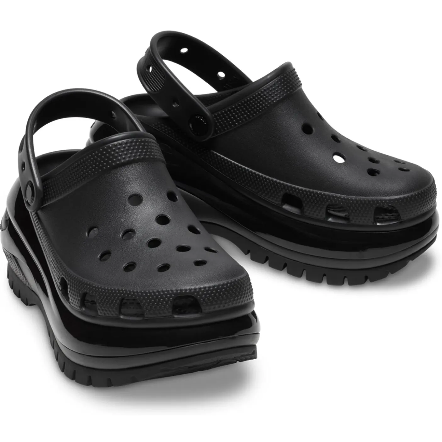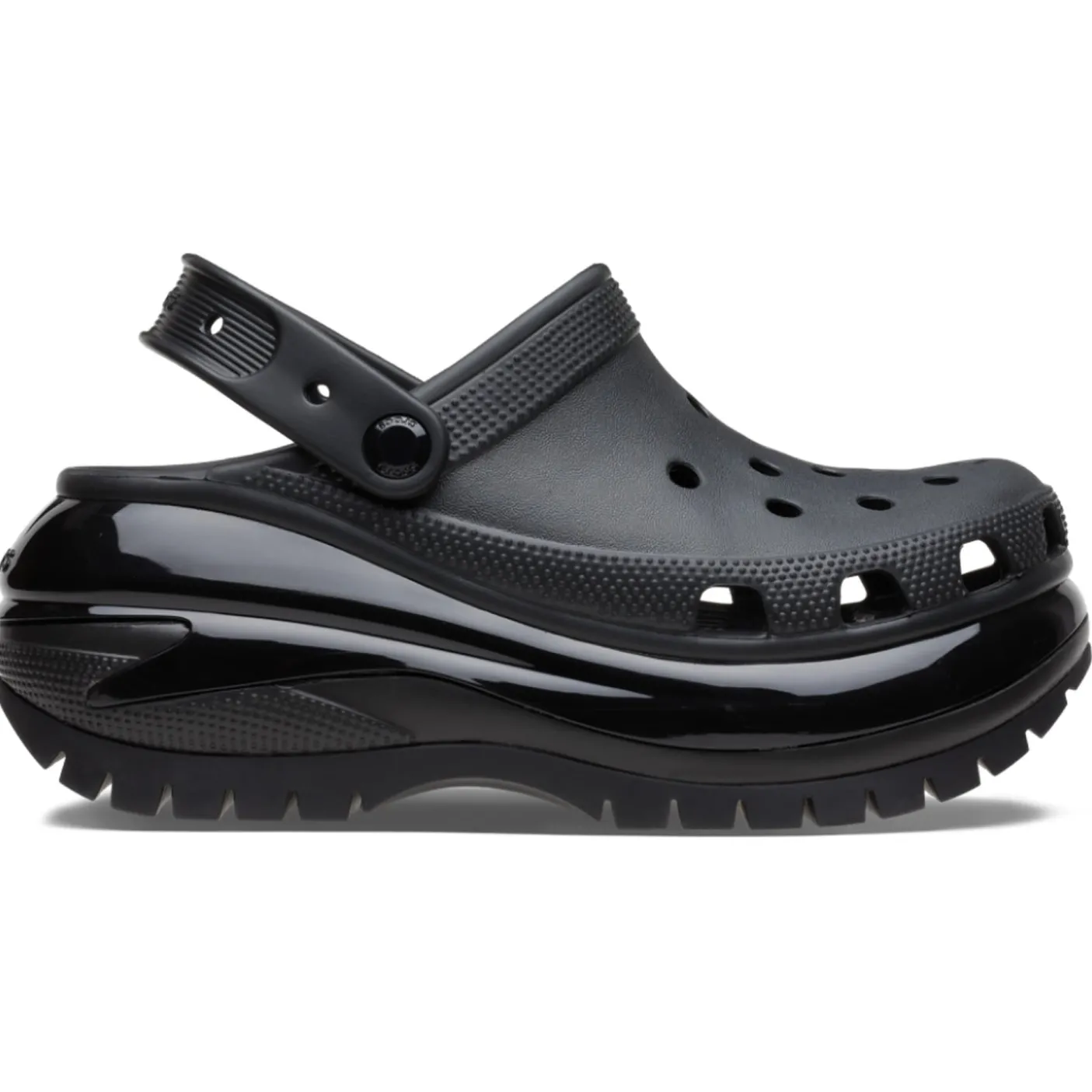 Our legendary Classic Clog. Now MEGA with bold styling and added height Croslite material midsole for lightweight cushioning. Heel strap for a secure fit. Non-marking Croslite material outsole. Dual Crocs comfort. Accepts Jibbitz.