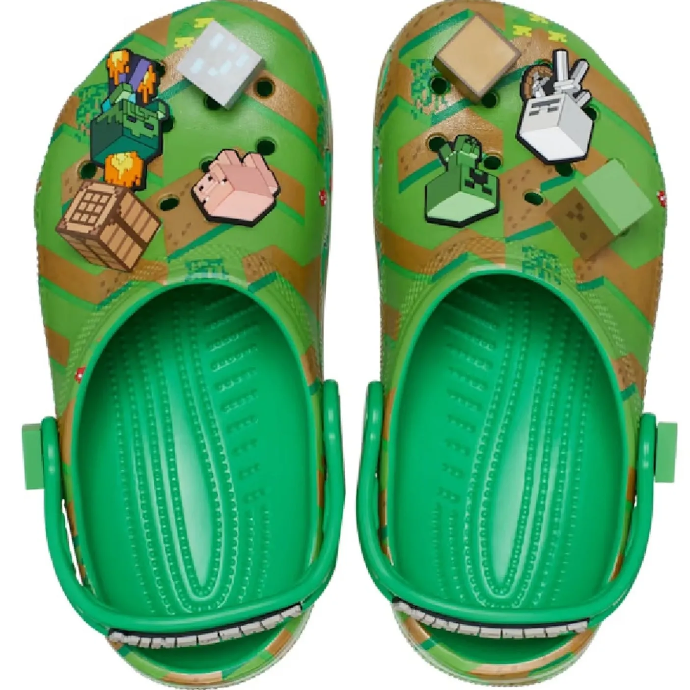 Starring graphics from Minecraft. Incredibly light and fun to wear. Heel strap for a more secure fit. Iconic Crocs Comfort cushioning. Licensed by Mojang Studios.