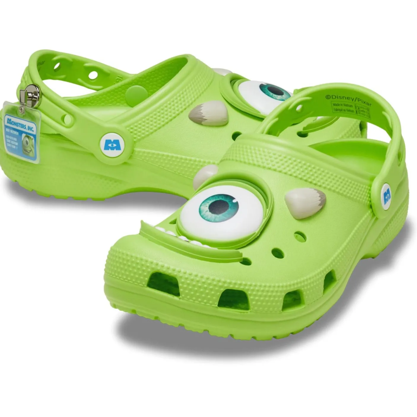 The Monsters Inc Mike Wazowski Lovers Crocs! Starring graphics from Monsters Inc. Incredibly light and fun to wear. Heel strap for a more secure fit. Iconic Crocs Comfort cushioning. Licensed by Disney..
