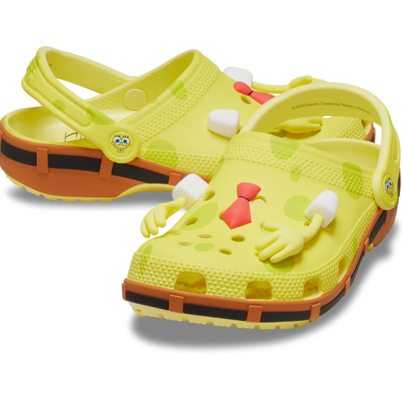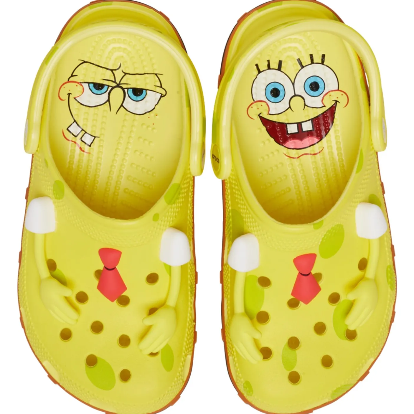 Absorbent, yellow, and delightfully porous. It’s the SpongeBob Classic Clog! This exclusive design brings SpongeBob SquarePants to life in shoe form, featuring a vibrant all-over print and posable Jibbitz arms for a fun, animated touch.