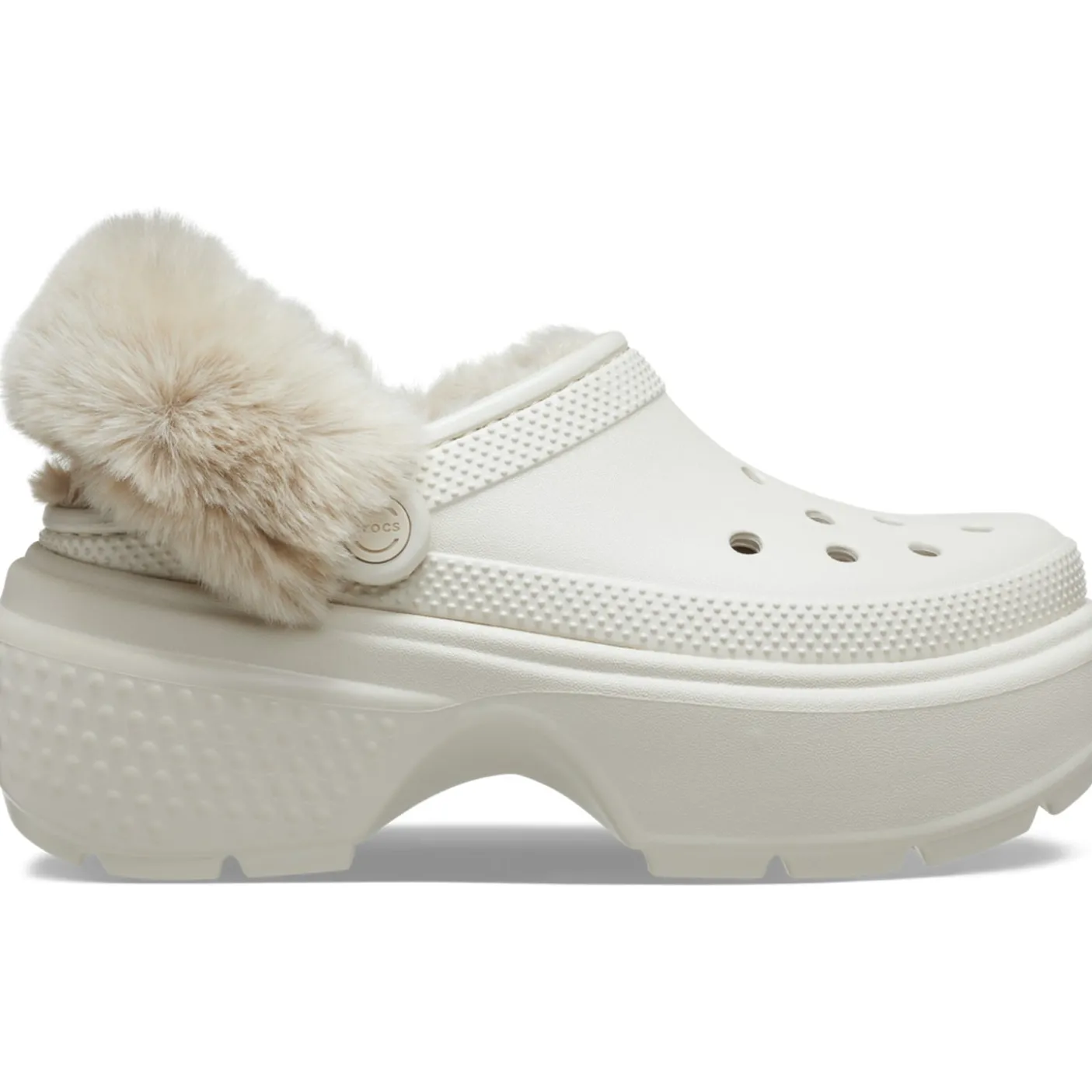 Crocs iconic Stomp Clog with a lined inner. Fully-moulded Croslite material construction for lightweight cushioning. Massage-pod footbed feels good. Heel strap. Non-marking Croslite material outsole. Accepts Jibbitz.