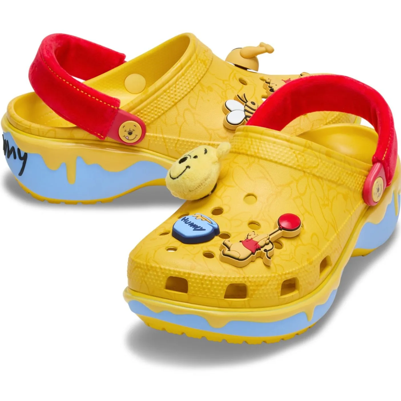 Moulded lighweight Croslite material construction with vents. In the iconic Winnie The Pooh colours. Comes with 6 unique Jibbitz