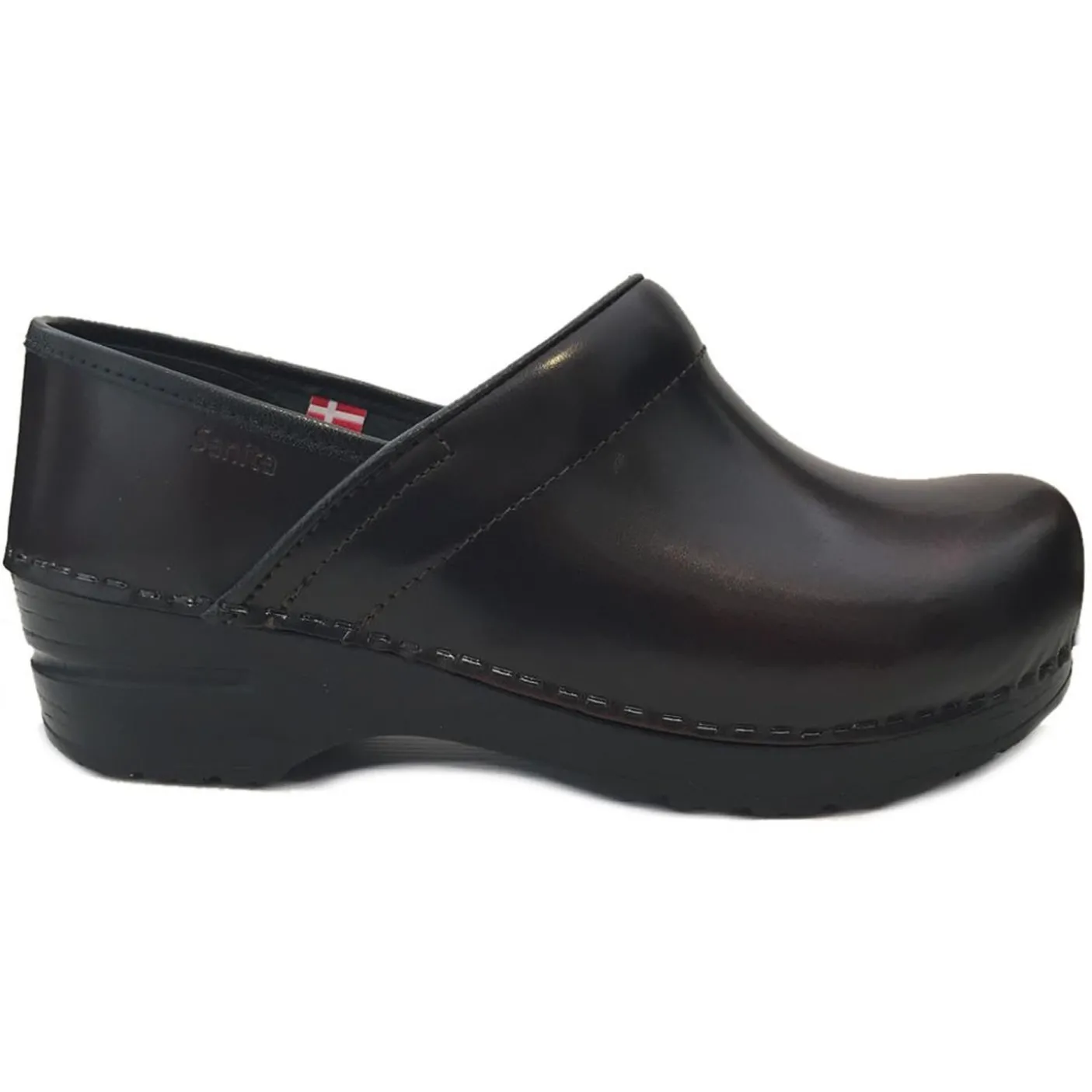 Unisex closed flexible clogs with cabrio leather uppers in a wide fit. Extra heel support. Thick grippy soles. From Danish makers Sanita.