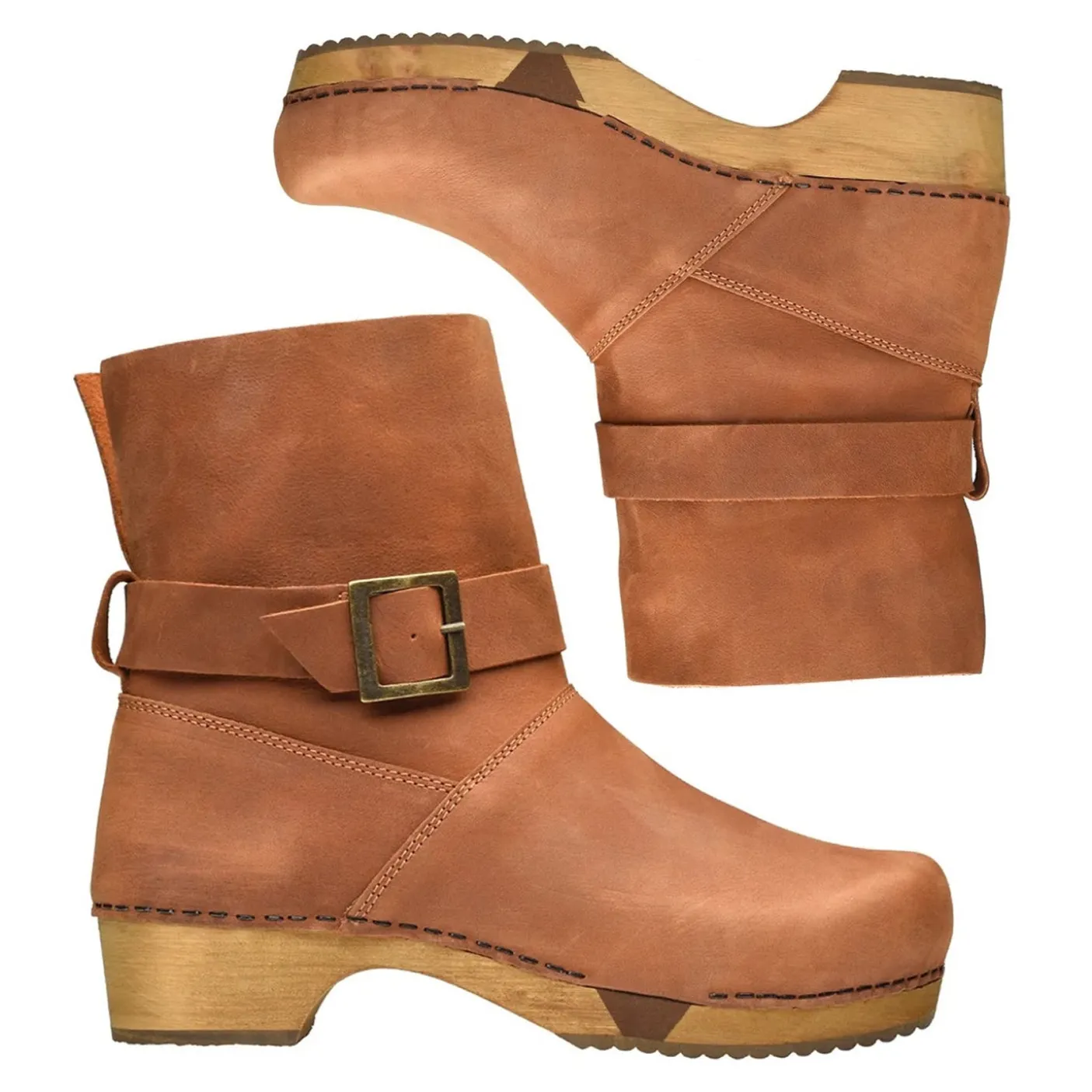 Sanita Runa Flex Flexible Wooden Clog Boots in Cognac (471217)