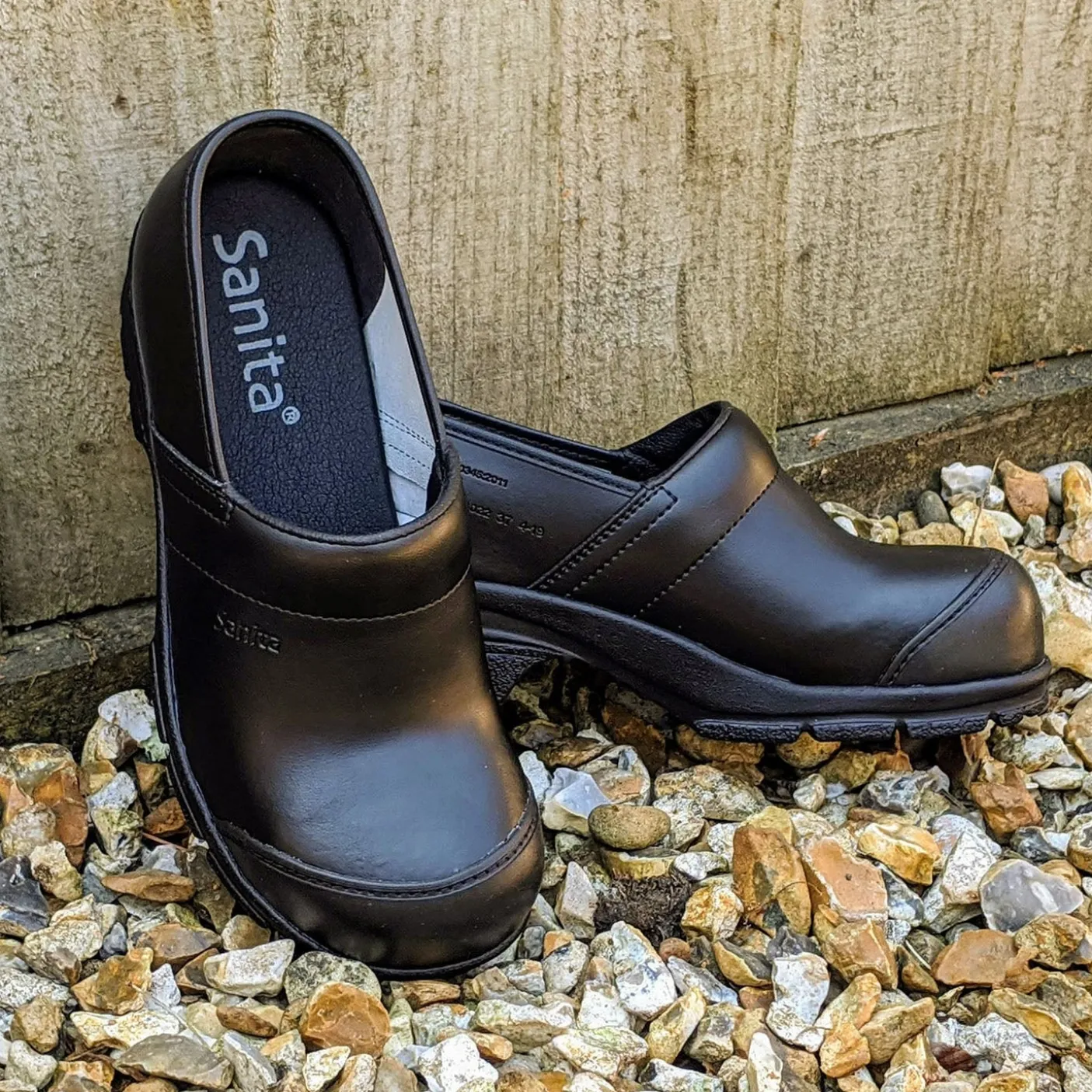 Unisex closed flexible safety clogs with toe protection and Permair Protector leather.