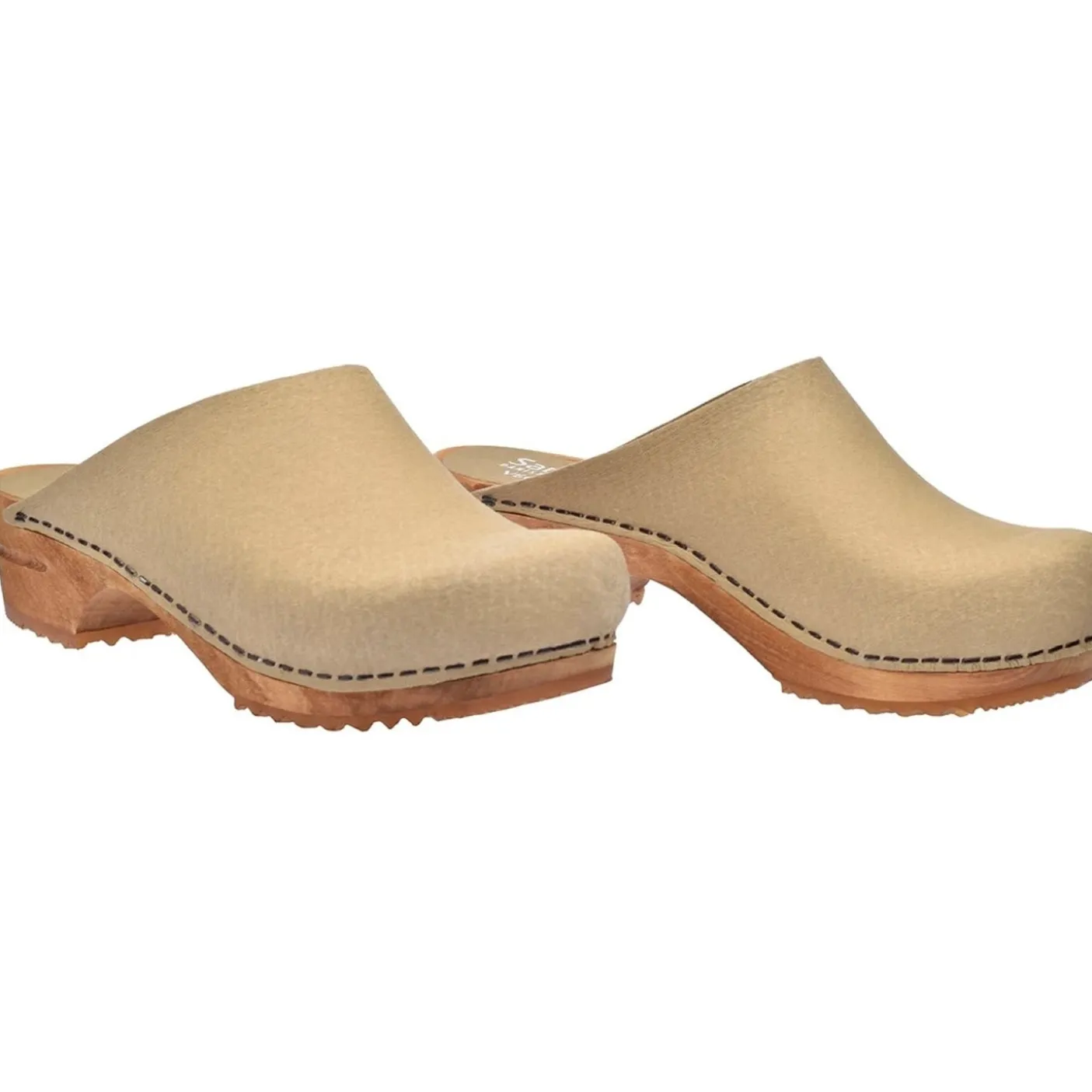 Vegan open wooden footbed clogs with plant-based uppers. From Danish makers Sanita.