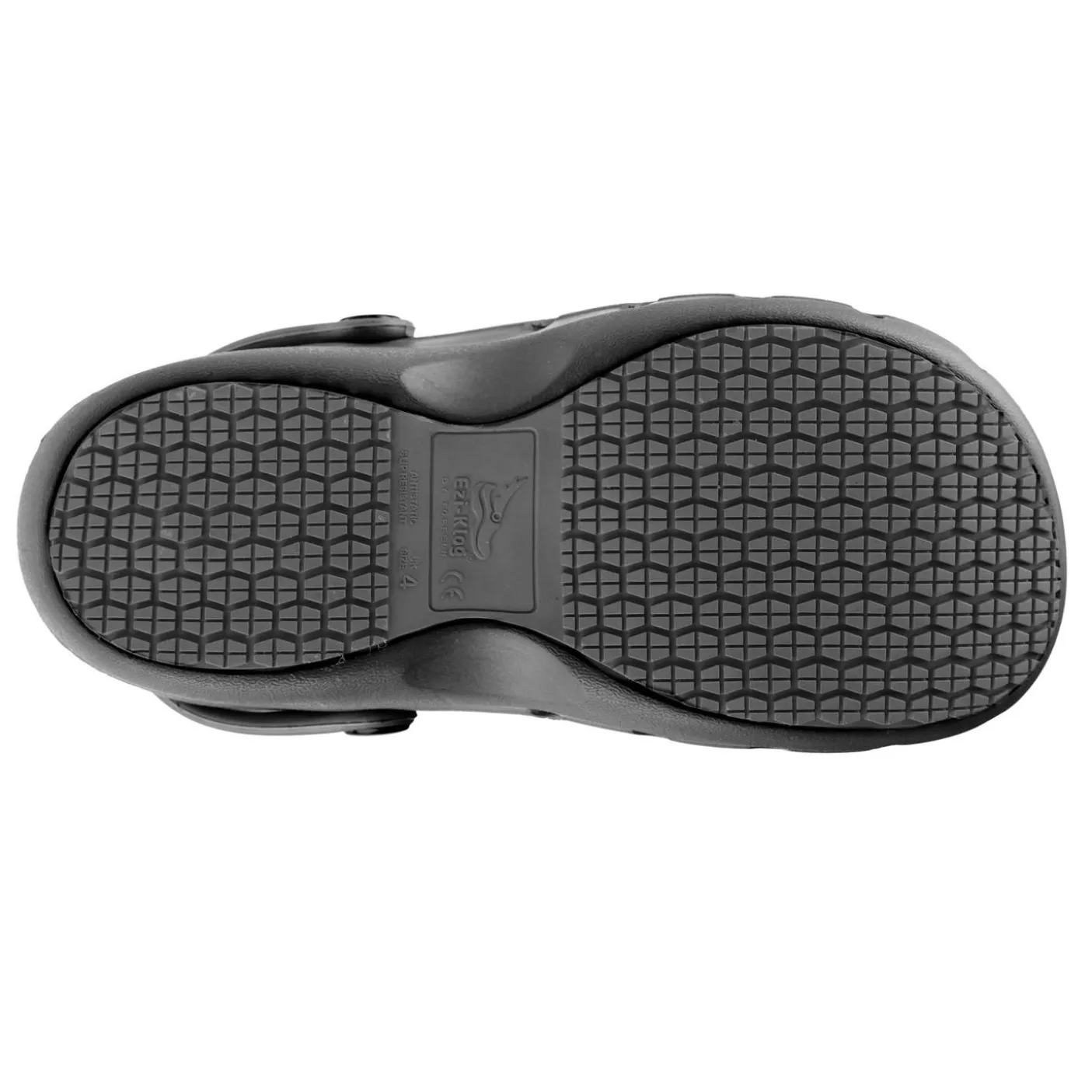 Extremely lightweight E-Tech material, weighing less than 180g per clog. Top CE rated “Grip safe” anti-slip and antistatic rubber sole that covers the whole sole. This makes it the safest to wear in its class. Holds the foot securely and gives the correct support.