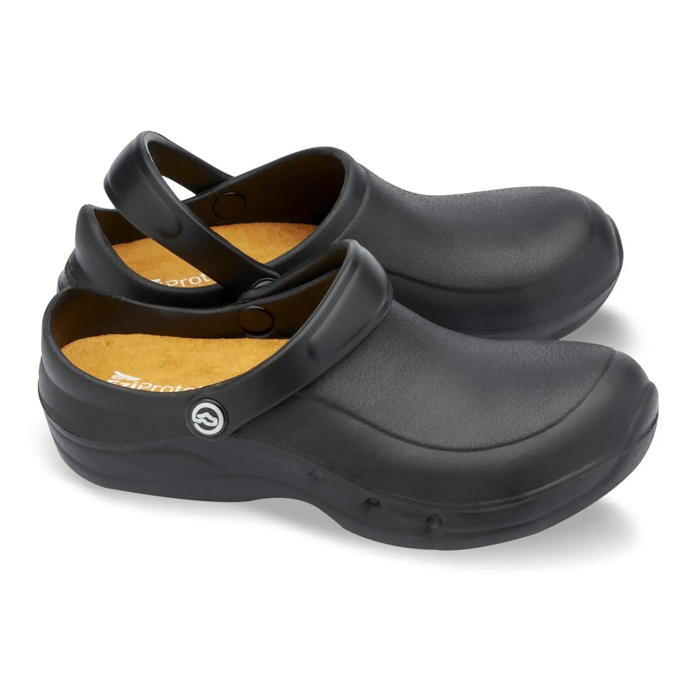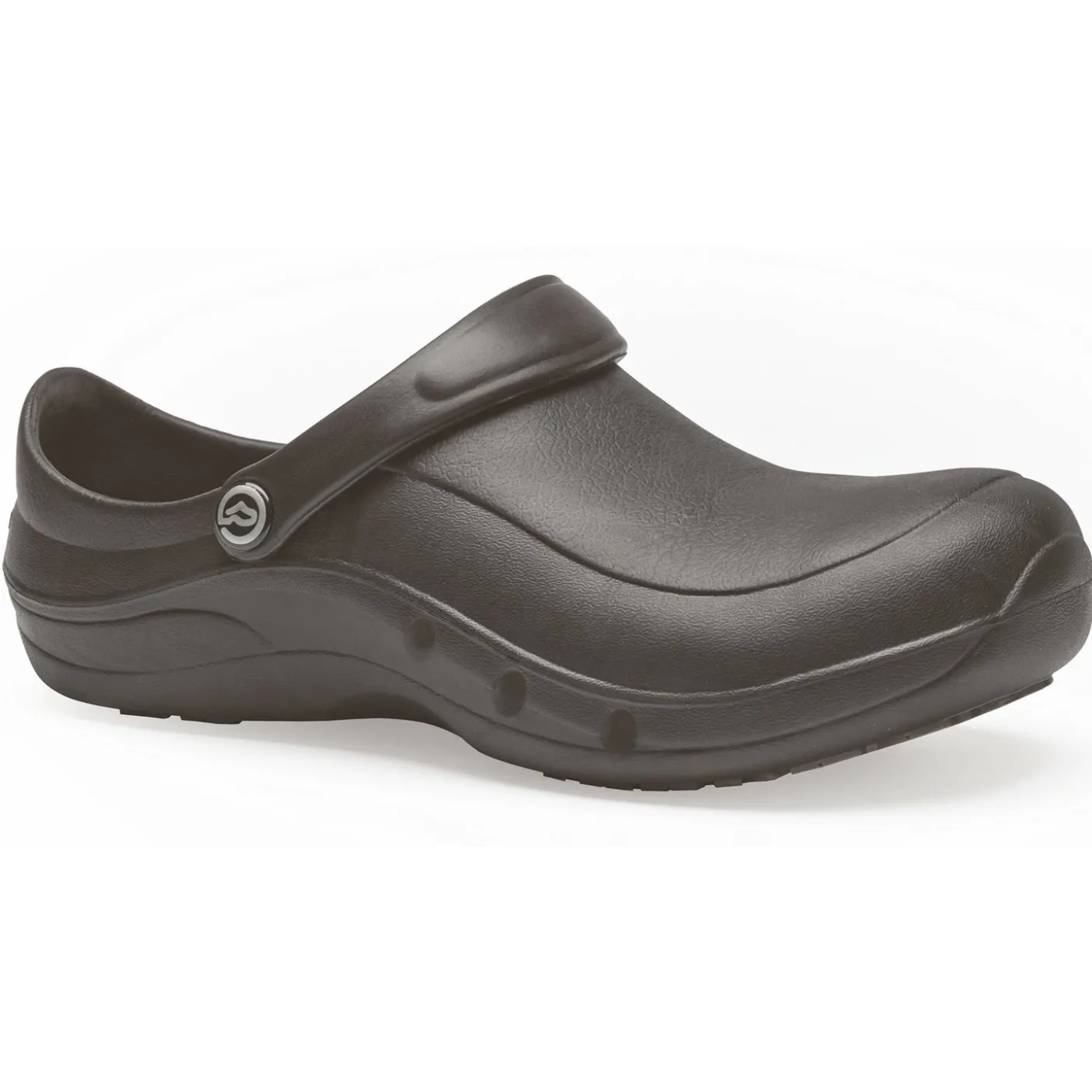 Extremely lightweight E-Tech material and composite toe cap, weighing less than 250g per clog. Top SRC rated “Grip safe” slip-resistant sole. Conforms to CE EN ISO 20345. Holds the foot securely and gives the correct support.