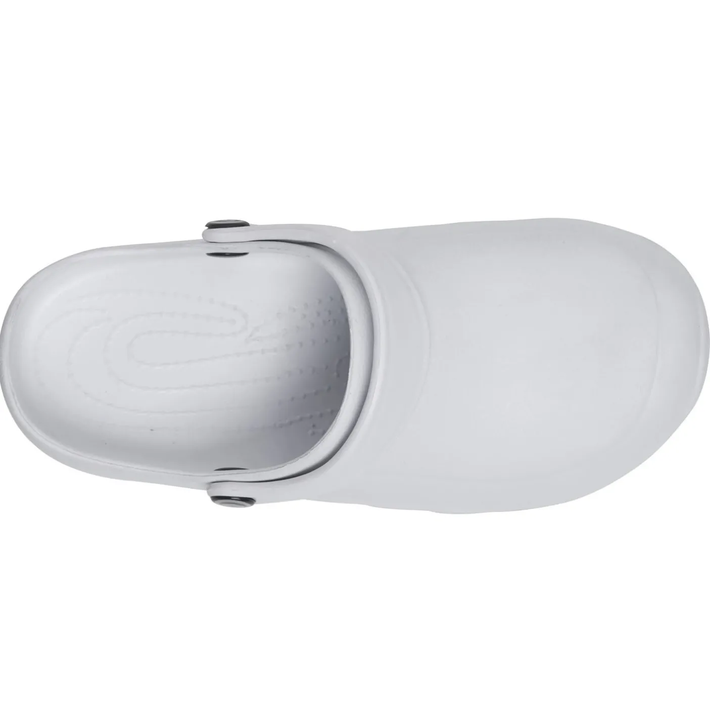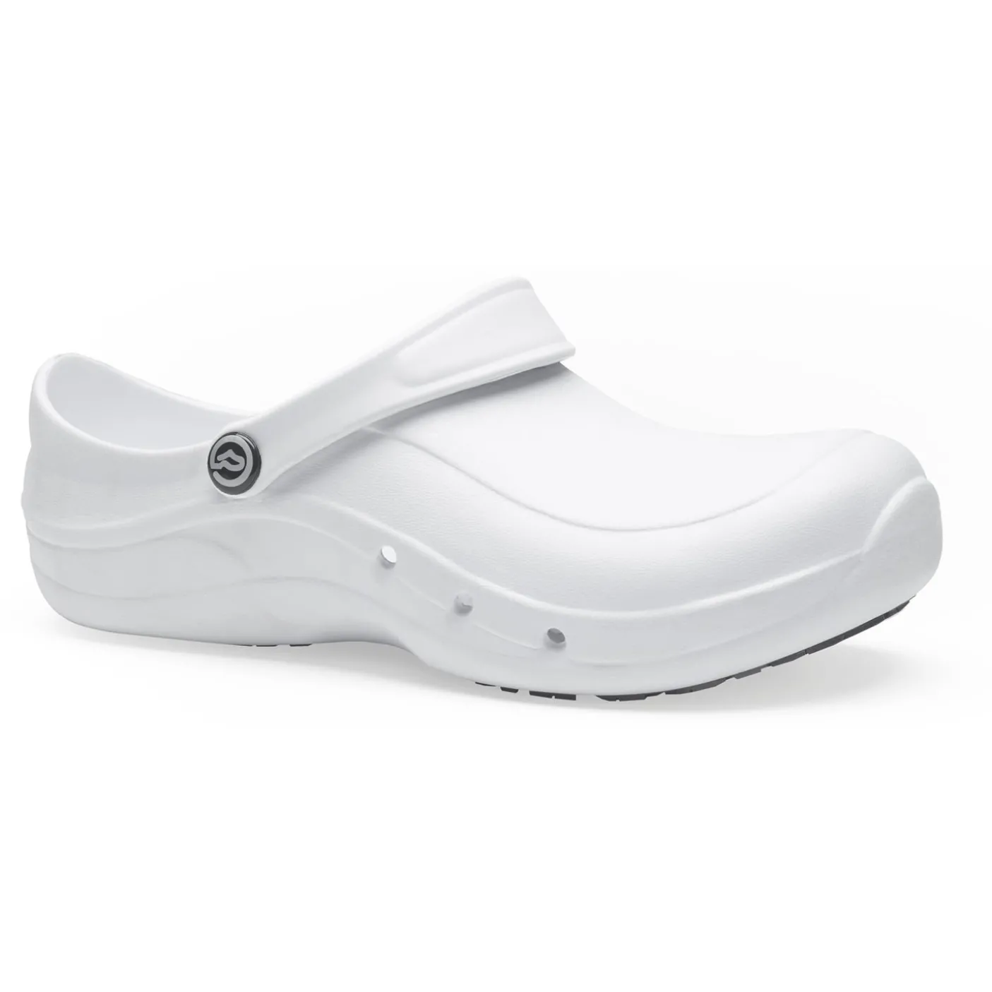 Extremely lightweight E-Tech material and composite toe cap, weighing less than 250g per clog. Top SRC rated “Grip safe” slip-resistant sole. Conforms to CE EN ISO 20345. Holds the foot securely and gives the correct support.