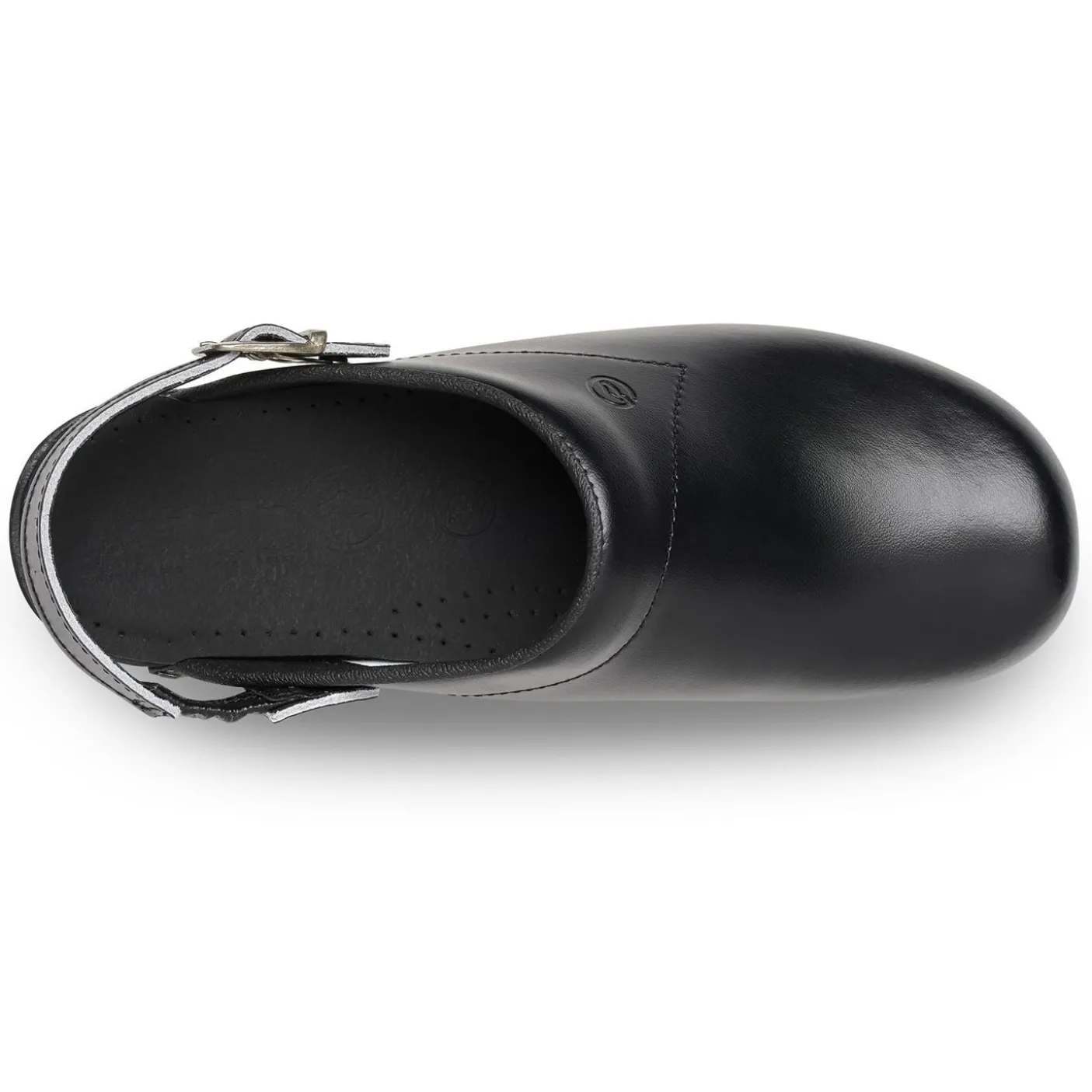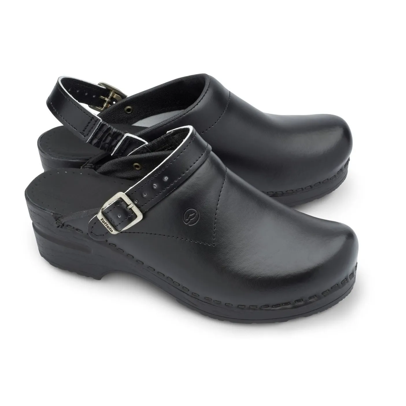 Unisex flexible arch-supporting clog with elasticated heel strap which holds the foot securely.