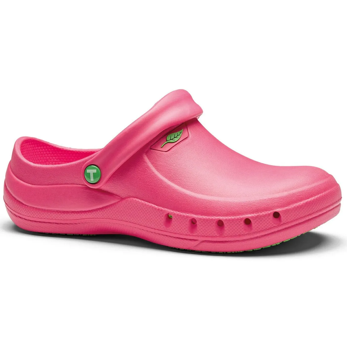 The toffeln Green T Ezi Klog is a carbon neutral version of the already legendary Ezi Klog. Improved styling provides an upgrade on looks and comfort. Gripsafe Extreme sole provides the highest level of slip-resistance. Comforttech cushioning brings joy to the underfoot by removing pressure points and reducing fatigue. Soft-feel moulded E-tech material. Gripsafe Extreme slip-resistant soles. Renewable EVA. Super-lightweight and flexible. Reversible heelstrap to secure the foot when required. Washable to 40 degrees celsius. Antistatic. CE Marked.