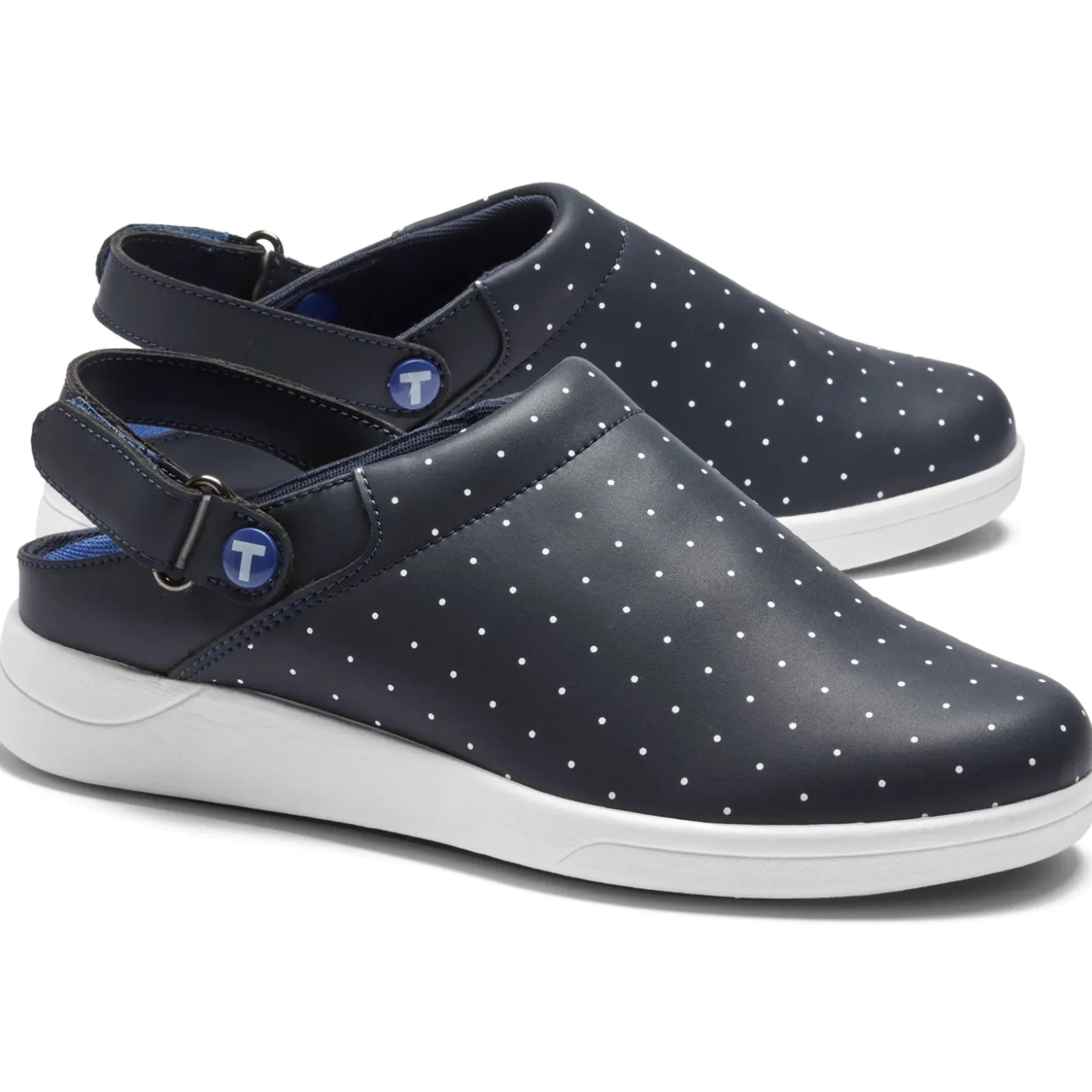 Unisex lightweight comfort clog with adjustable heel strap and patterned uppers. Designed for nurses from research with Salford University.