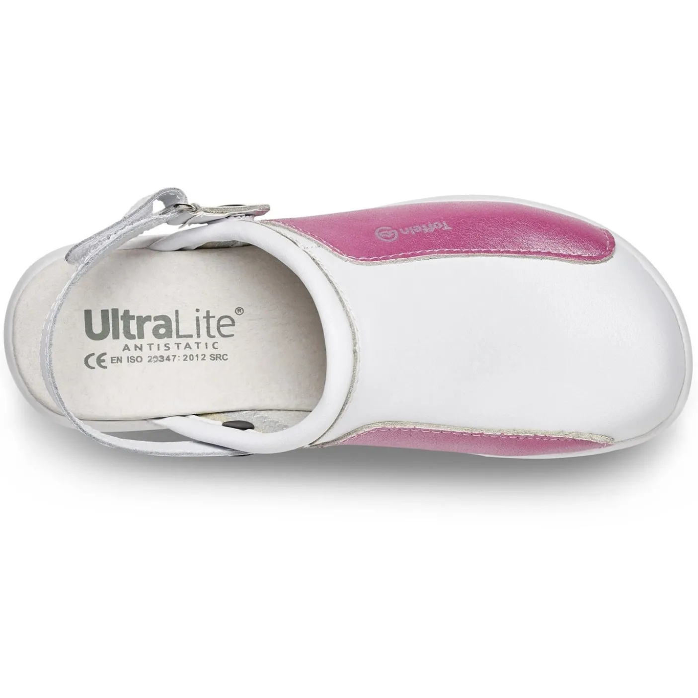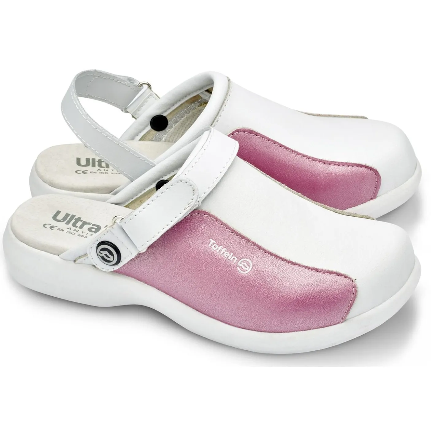 Unisex comfort shoe with adjustable heel strap and contrasting colour panel on upper.