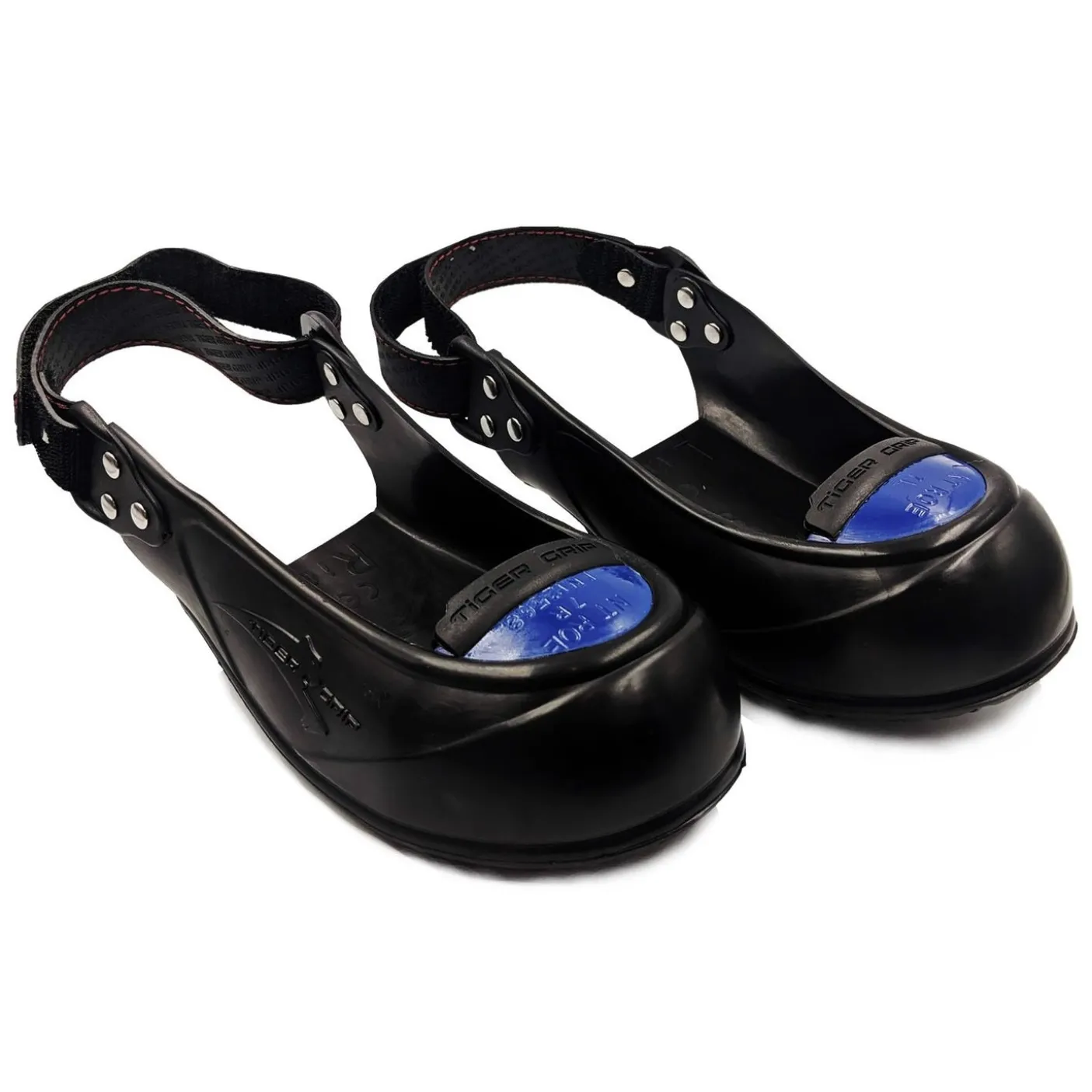 Pair of safety overshoes, easily worn over all types of footwear (even heels!) to ensure a safe visit with the minimum of fuss. Super light aluminium/titanium toe cap (200 joules resistance). Adjustable heavy duty velcro strap to achieve a secure fit. Slip resistant sole. 3 sizes for all shoe sizes, colour-coded for easy identification. Conforms to EN ISO 20345:2011 EN 12568 SRC.