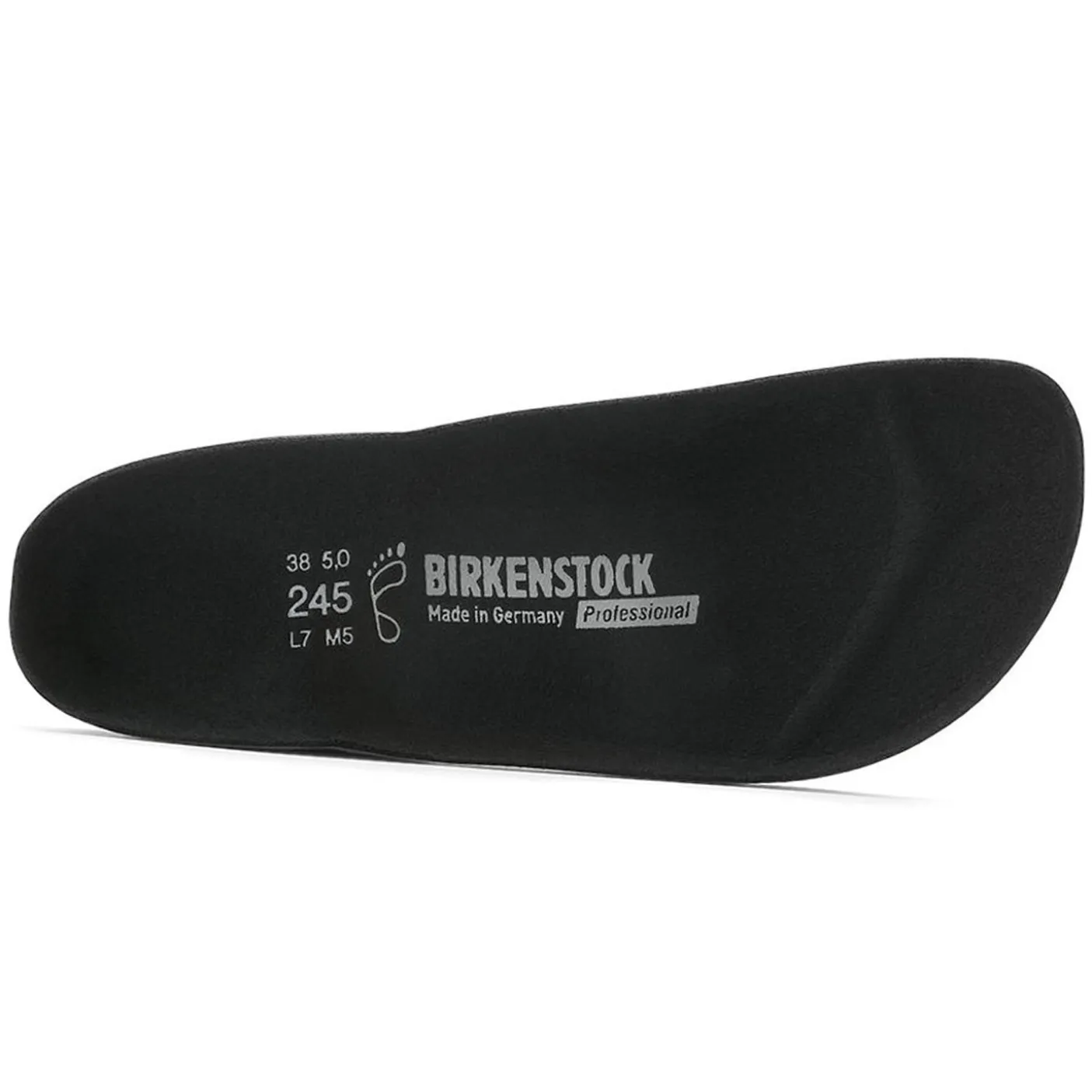 Replacement PU footbed with black fabric lining for use specifically with Birkenstock Profi-Birki. Hand-washable to 30 degrees celsius.