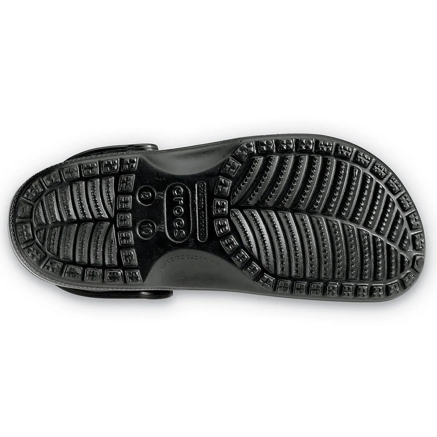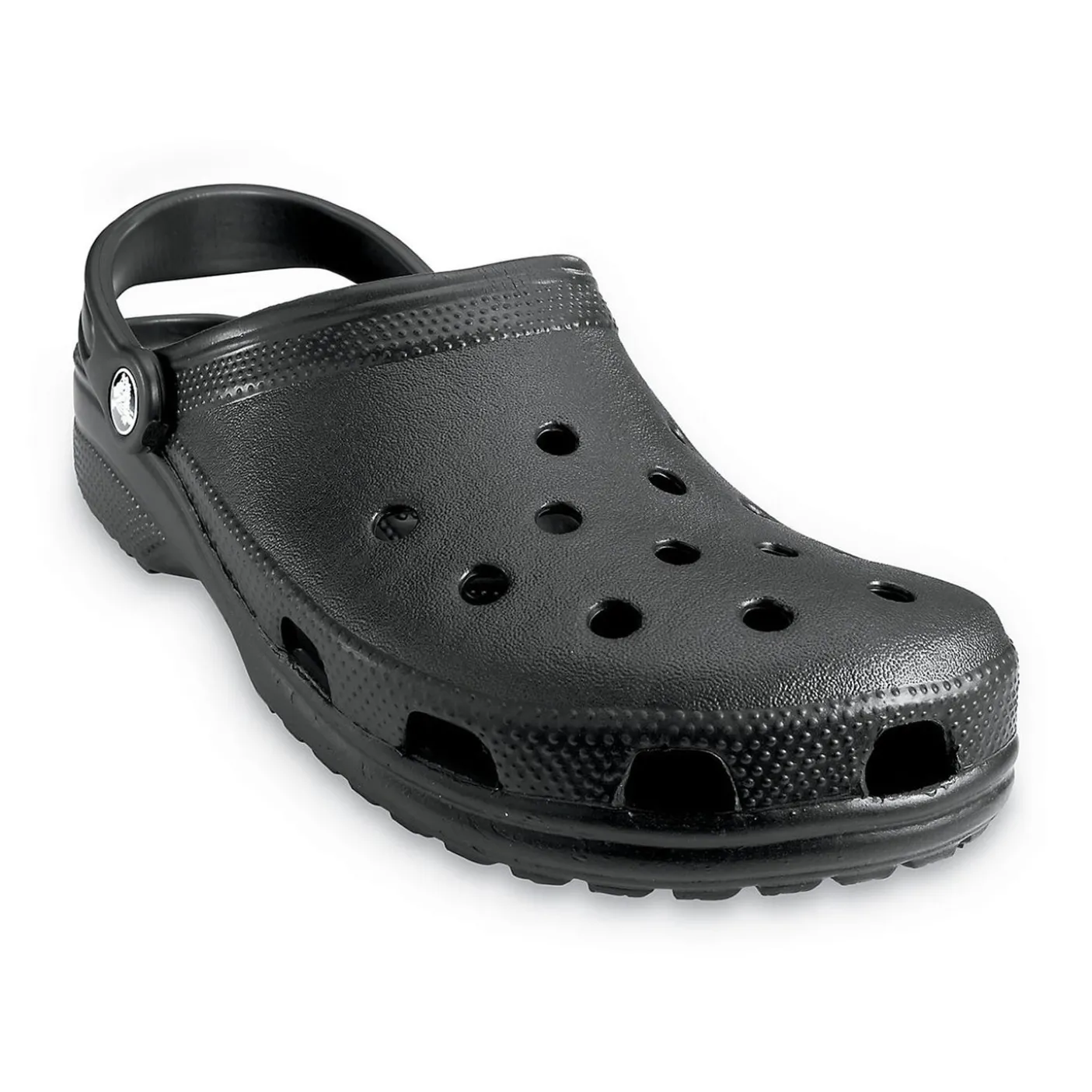 Fully-moulded Croslite material construction for lightweight cushioning. Massage-pod footbed feels good. Heel strap. Non-marking Croslite material outsole. Accepts Jibbitz.