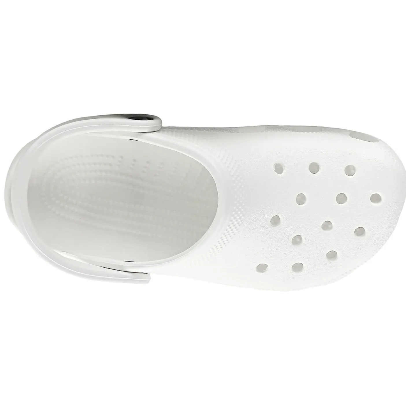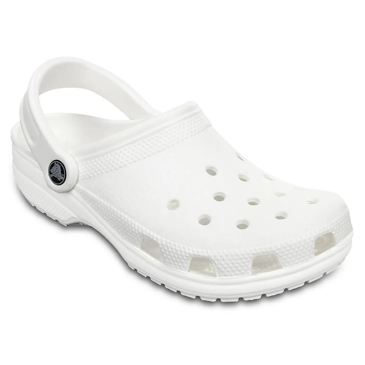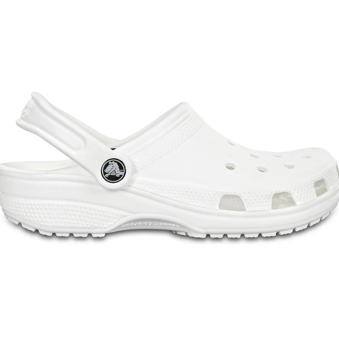 Fully-moulded Croslite material construction for lightweight cushioning. Massage-pod footbed feels good. Heel strap. Non-marking Croslite material outsole. Accepts Jibbitz.
