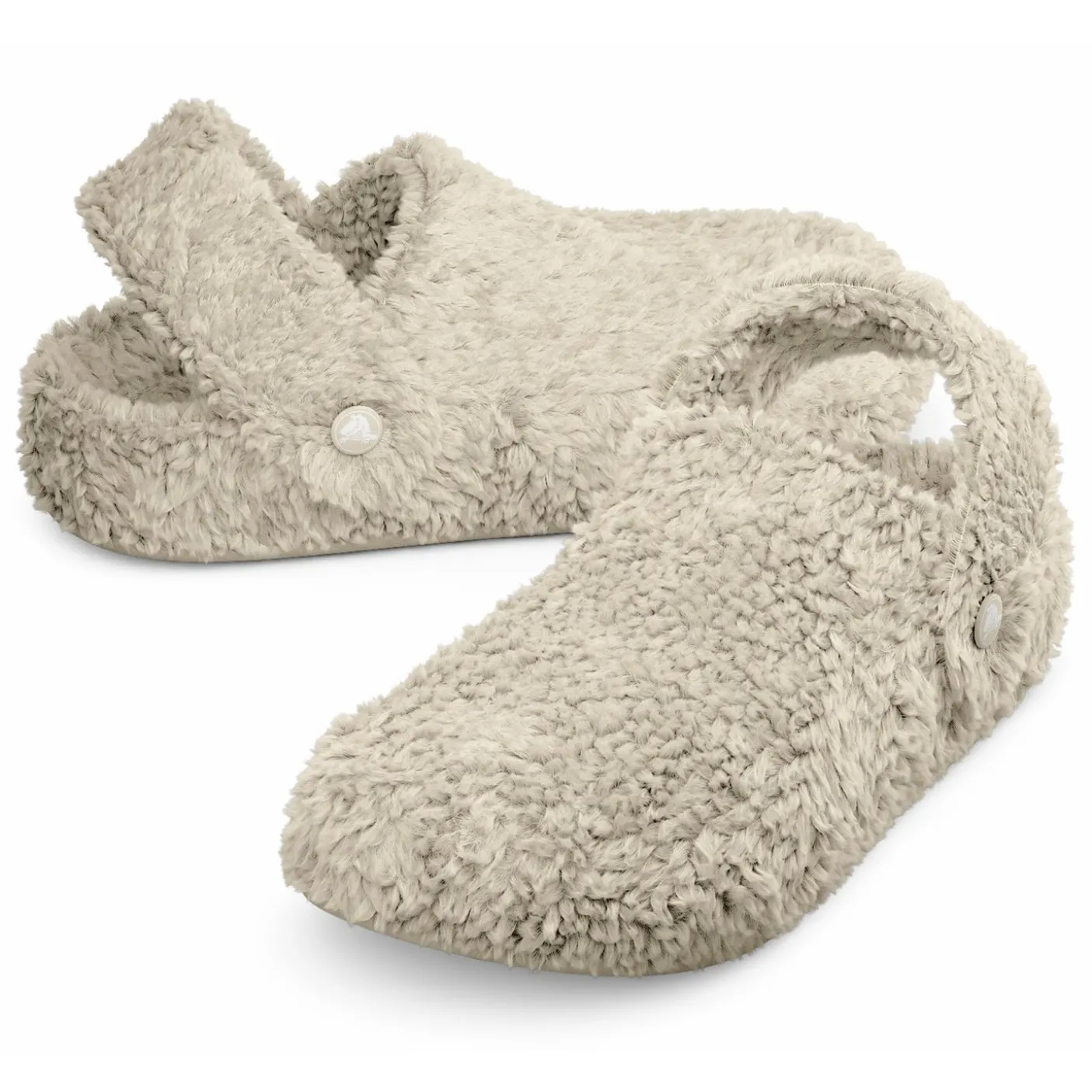 The original Crocs classic turned into a slipper, with a soft fuzzy lining. Rear strap to secure your feet. Stylish footbeds. Warm, fuzzy lining. Iconic Crocs comfort. Accepts Jibbitz.