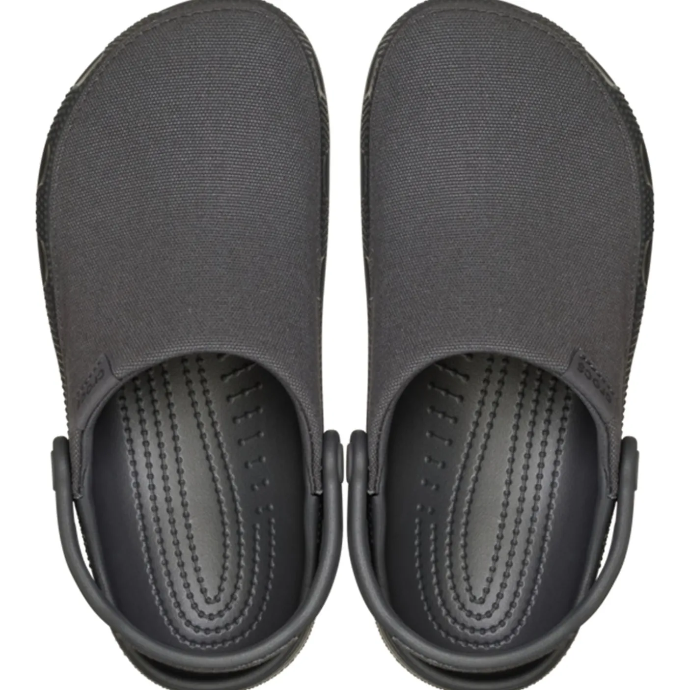 Meet your new go-to clog. The Classic Crafted Clog. It keeps everything you love about the Classic Clog but introduces a soft, washed canvas upper made from 100% textile. You still get the familiar fit and reliable Croslite outsole for durability and support, while the canvas adds a youthful, stylish touch and extra comfort. It also serves as a perfect canvas for personalization with markers, and the heel-strap Jibbitz holes let you customize even more. For a fresh, creative spin on classic Crocs comfort, step into the Classic Crafted Clog.