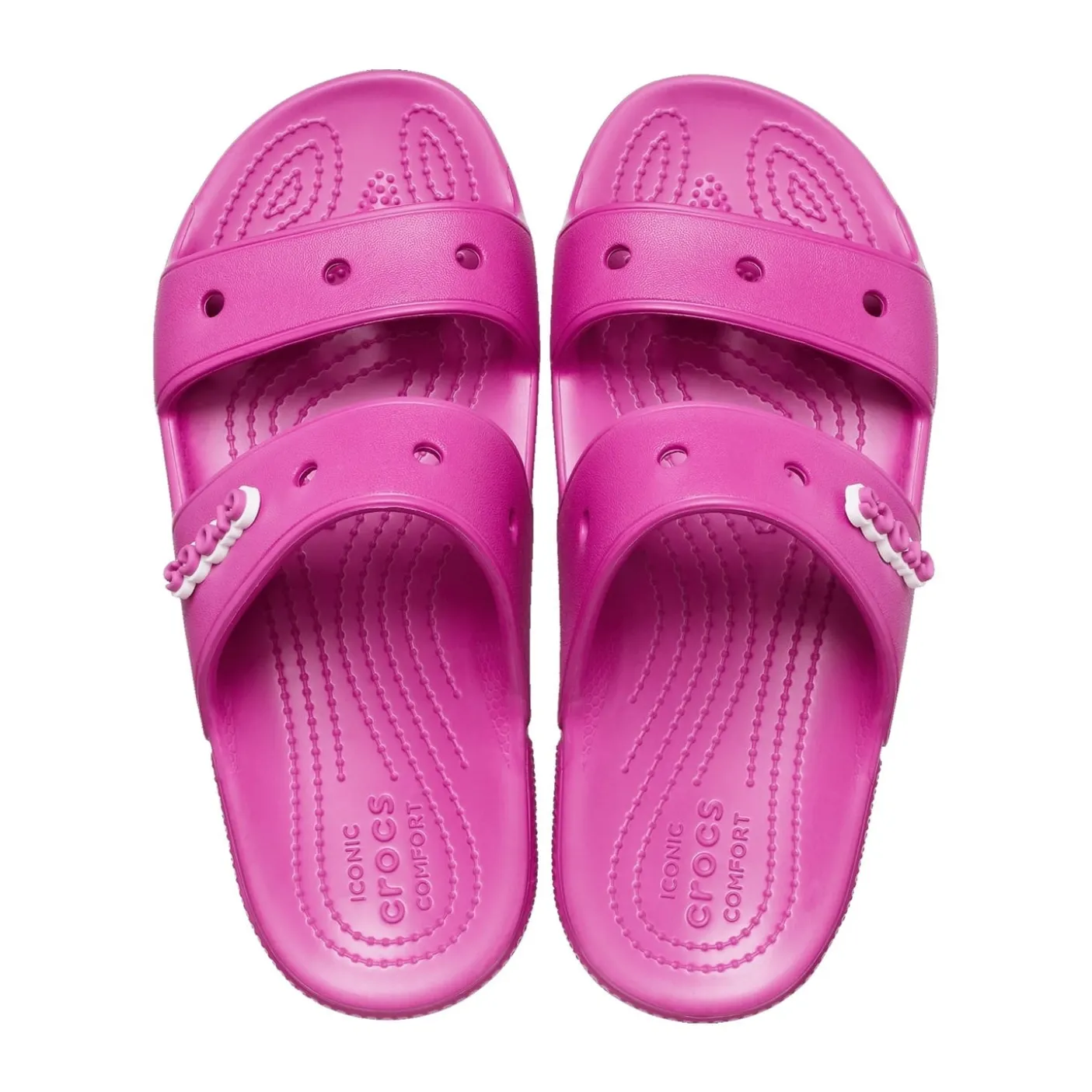 Two upper straps that secure your feet. Flex grooves on soles to increase flexibility and enhance traction. Waterproof and Quick-drying. Iconic Crocs comfort.