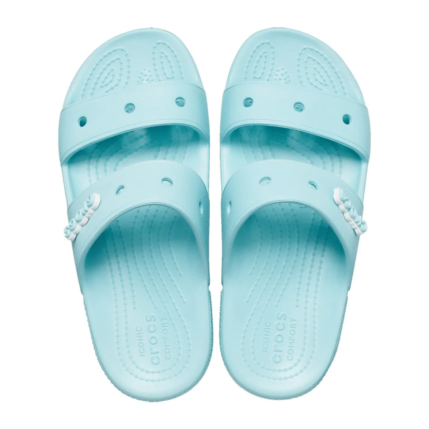 Two upper straps that secure your feet. Flex grooves on soles to increase flexibility and enhance traction. Waterproof and Quick-drying. Iconic Crocs comfort.