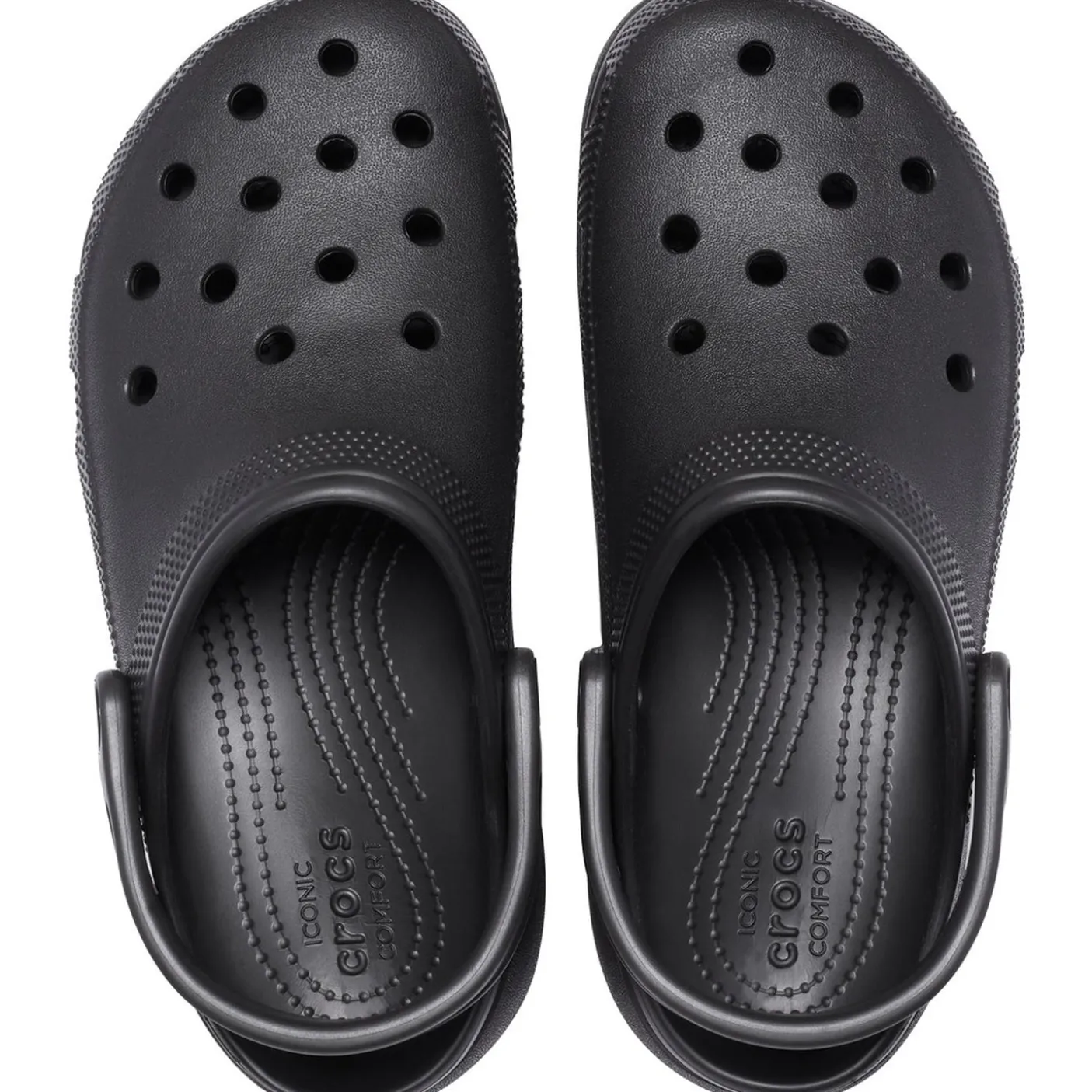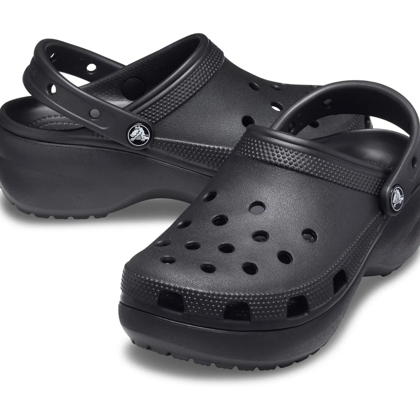 Our legendary Classic Clog. With a platform.Croslite material midsole for lightweight cushioning. Heel strap for a secure fit. Non-marking Croslite material outsole. Dual Crocs comfort. Accepts Jibbitz.