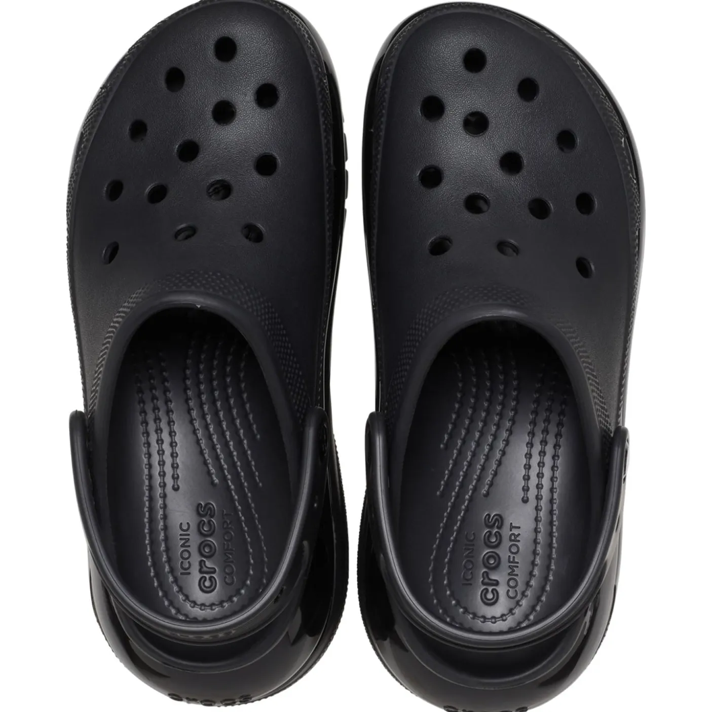Our legendary Classic Clog. Now MEGA with bold styling and added height Croslite material midsole for lightweight cushioning. Heel strap for a secure fit. Non-marking Croslite material outsole. Dual Crocs comfort. Accepts Jibbitz.