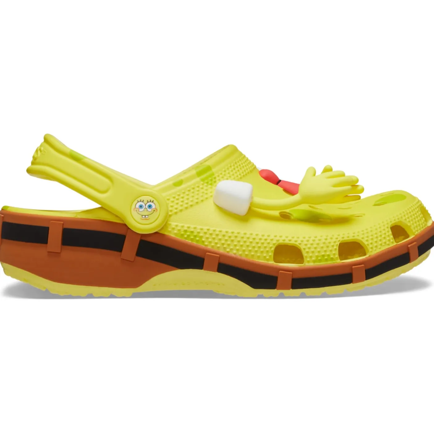 Absorbent, yellow, and delightfully porous. It’s the SpongeBob Classic Clog! This exclusive design brings SpongeBob SquarePants to life in shoe form, featuring a vibrant all-over print and posable Jibbitz arms for a fun, animated touch.