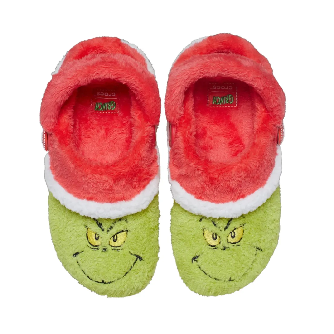 Even the Grinch can’t resist these cozy Classic Lined Clogs. The perfect mix of comfort and holiday cheer straight from Who-ville. Each pair is fully lined inside and out with soft, fuzzy warmth sure to make your heart grow three sizes. The Grinch’s mischievous grin decorates the upper, while his iconic green hand dangles from the heel strap clutching a shiny ornament. Slip into these snug clogs and discover the true spirit of Christmas in style.