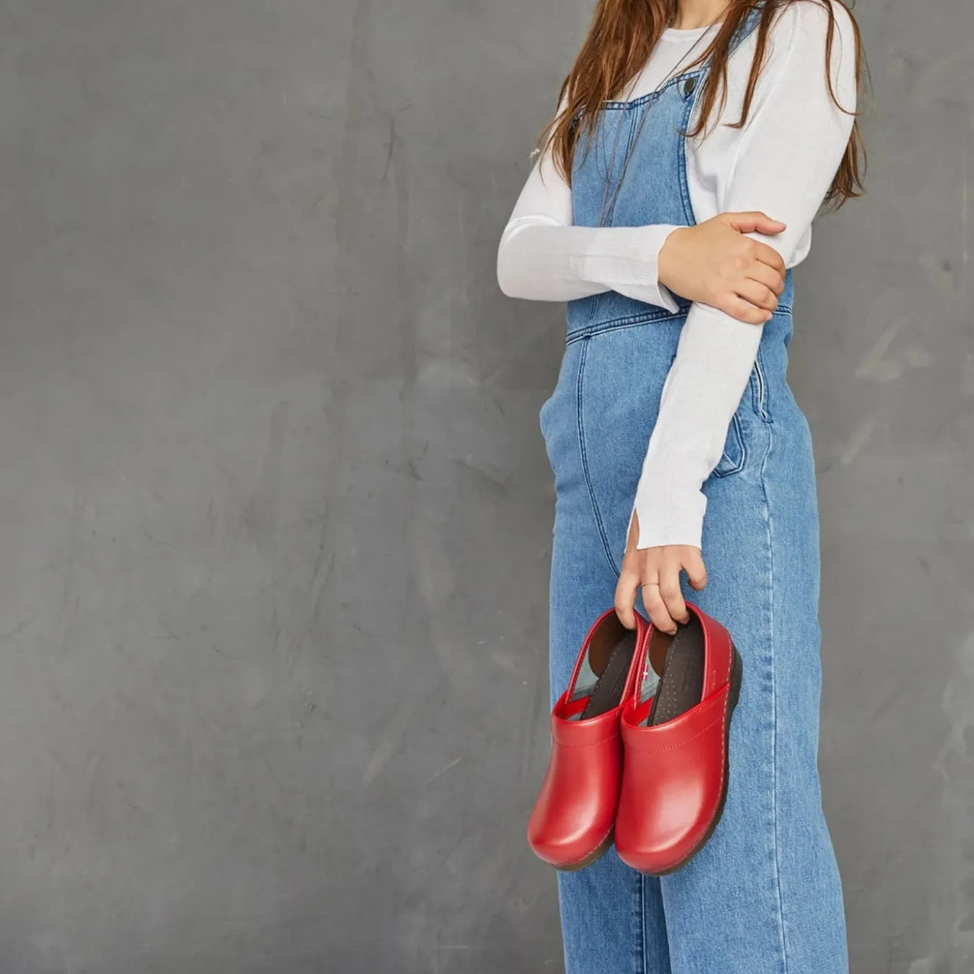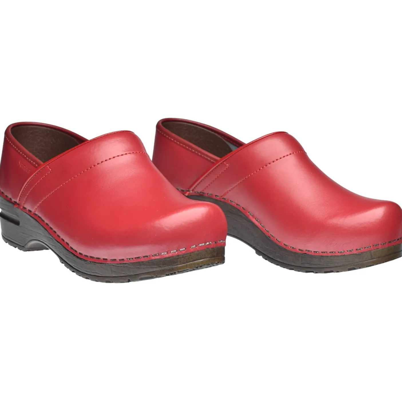 Ladies professional closed heel clogs. Smooth leather uppers in a single vibrant colour.