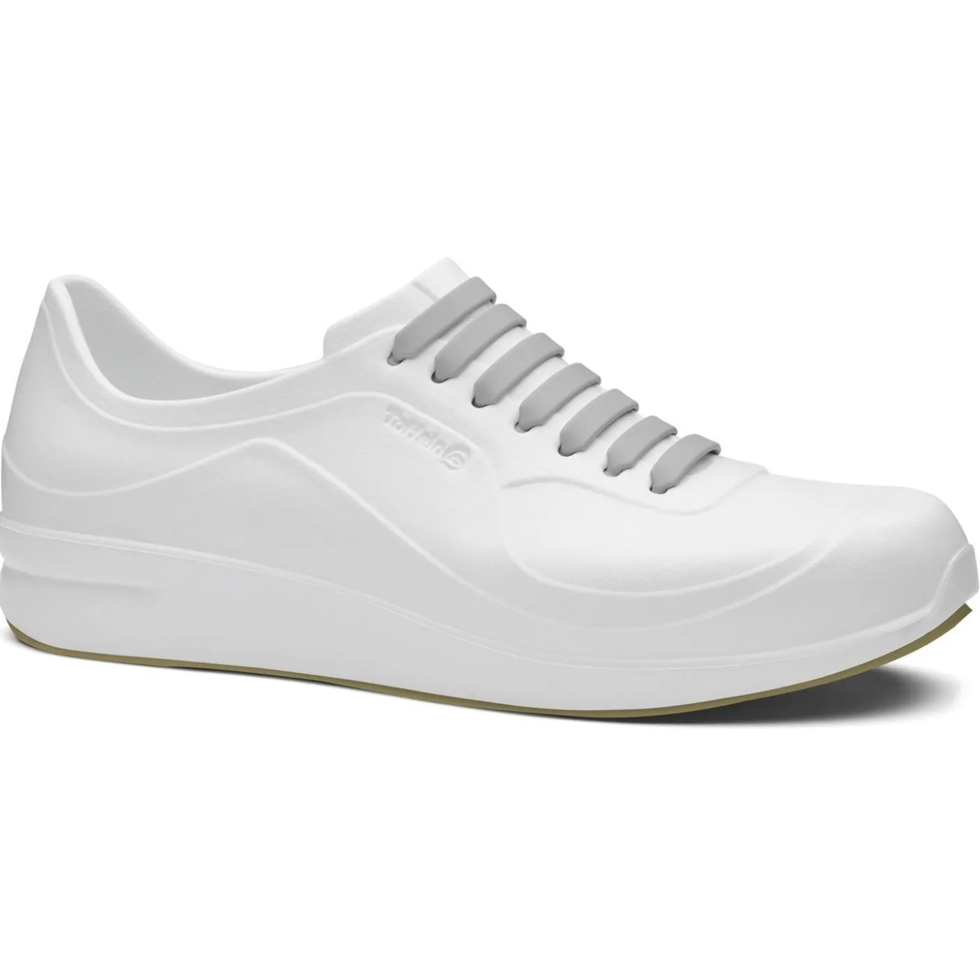 Fully-enclosed slip-on design based on a retro trainer, with fun rubber laces detail. Made primarily with the heathcare environment in mind. Made from super-lightweight yet super-durable EVA. Elasticated gussets enable a quick and secure fit. Grip-safe slip-resistant soles. Removable insoles. Washable at 40 degrees. CE Marked.