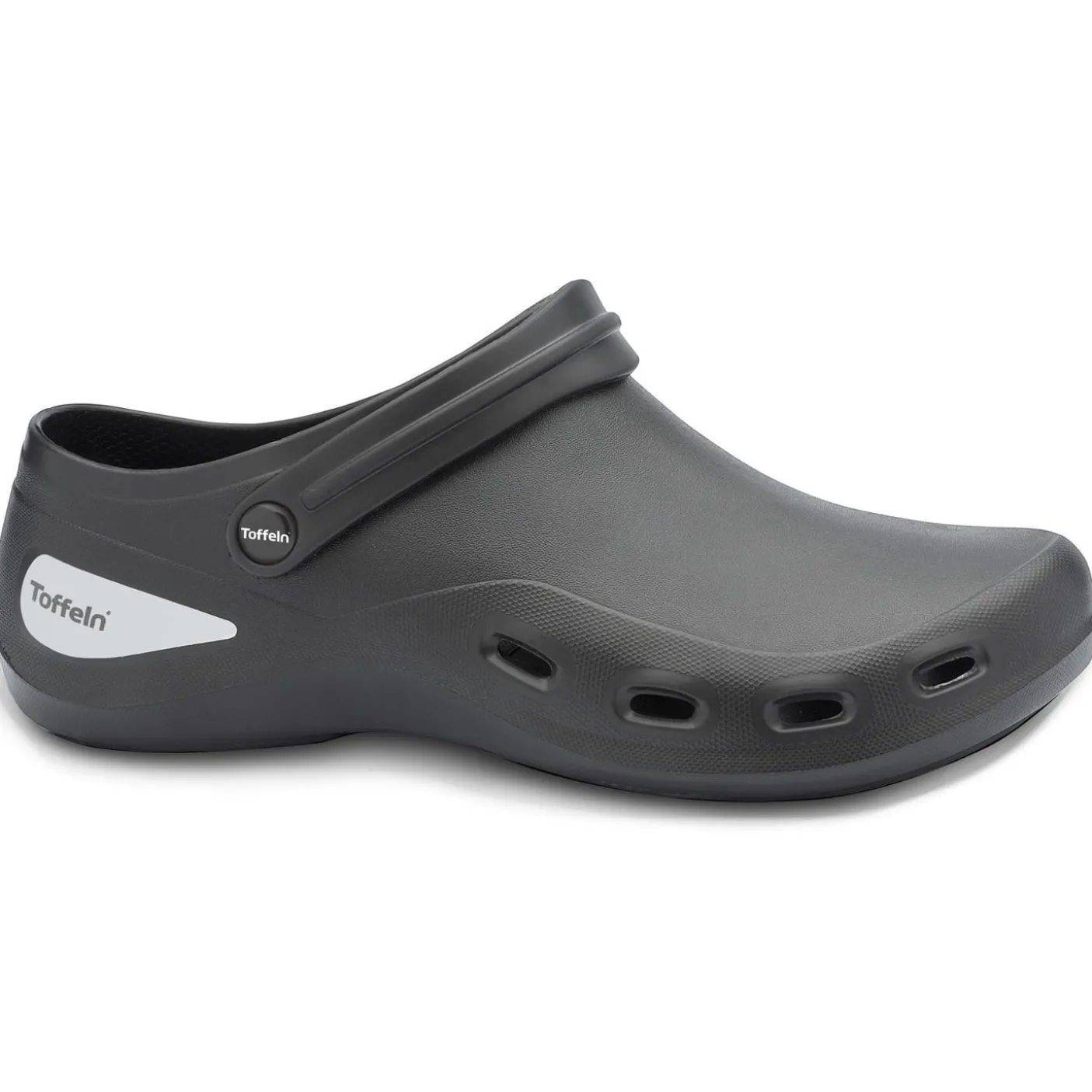 The toffeln Aktiv Klog takes toffeln’s clog heritage to a new level. It has taken what it knows works with regards to heel height and shape, ventilation, and slip resistance, and reapplied this knowledge using modern materials. It has then developed the science and ergonomics alongside biomechanics researchers at the University of Salford. The resulting product is Aktiv Klog.