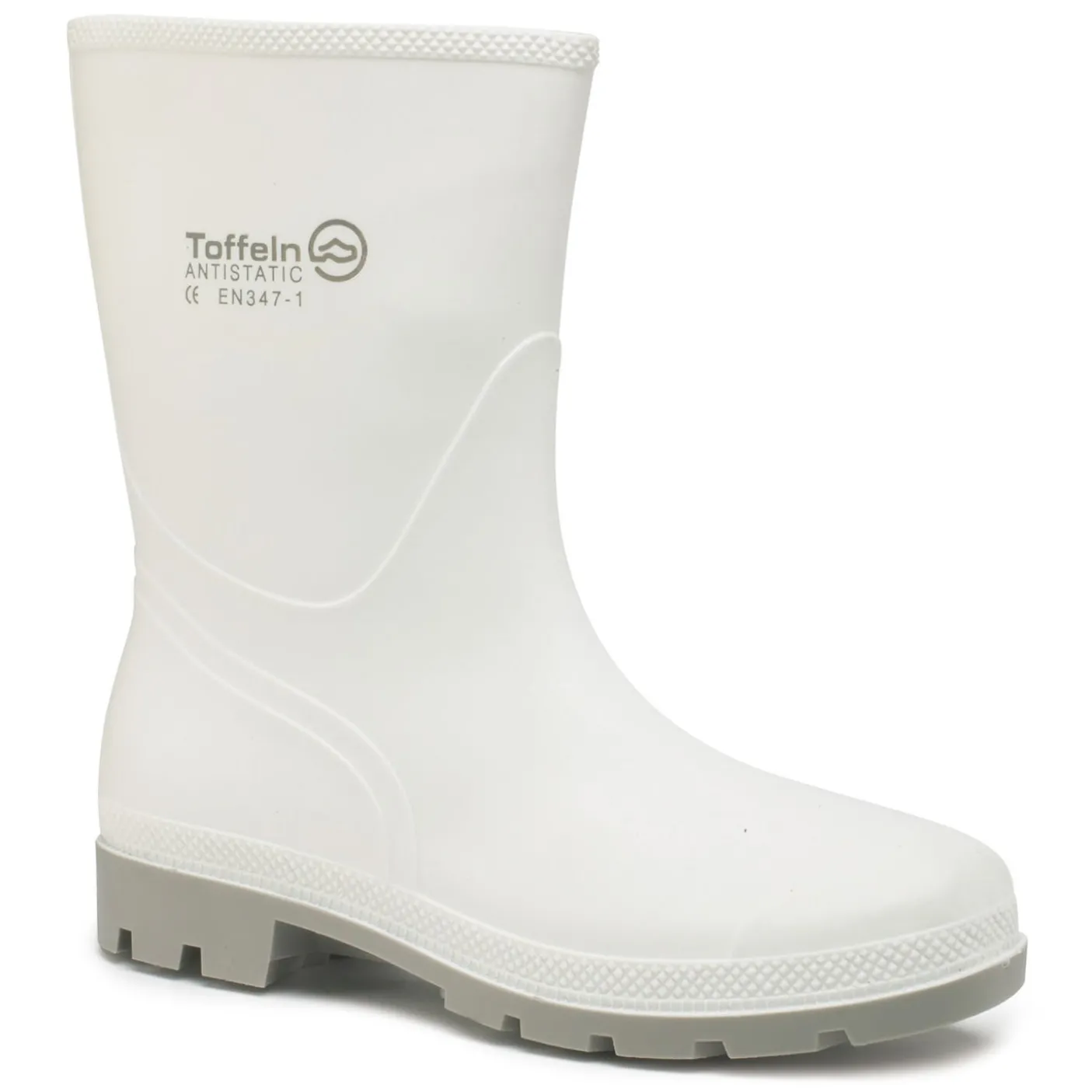 Unisex white lightweight PVC half wellington boot.