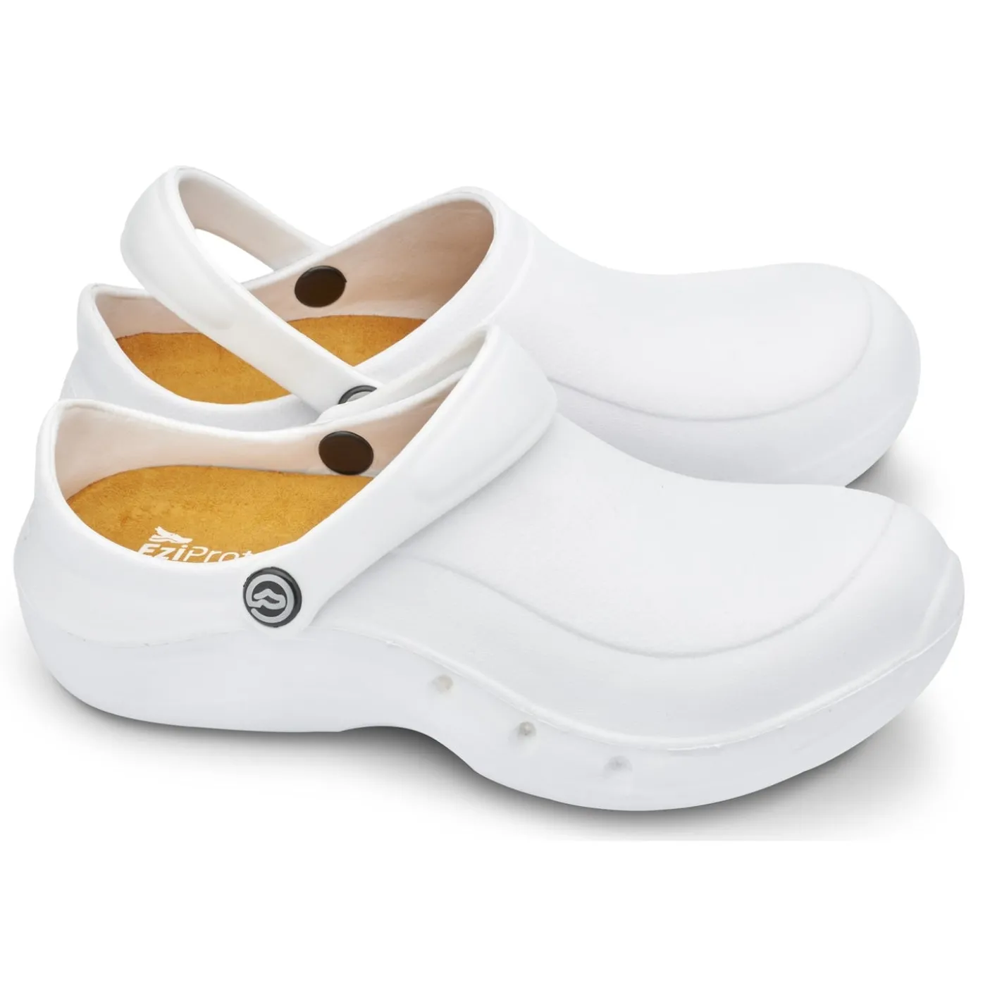 Extremely lightweight E-Tech material and composite toe cap, weighing less than 250g per clog. Top SRC rated “Grip safe” slip-resistant sole. Conforms to CE EN ISO 20345. Holds the foot securely and gives the correct support.