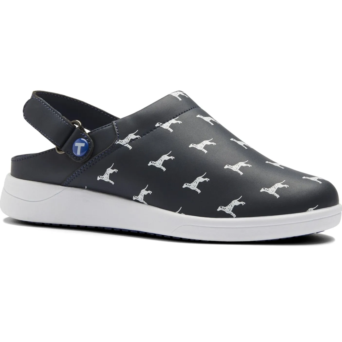 Unisex lightweight comfort clog with adjustable heel strap and patterned uppers. Designed for nurses from research with Salford University.