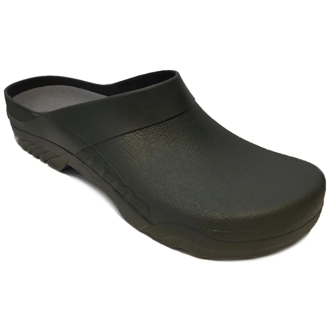 Super-supple strong moulded rubber design with removable cushioned insole. Dark Green in colour. Waterproof and easy to clean. Grippy soles. Made in Italy.